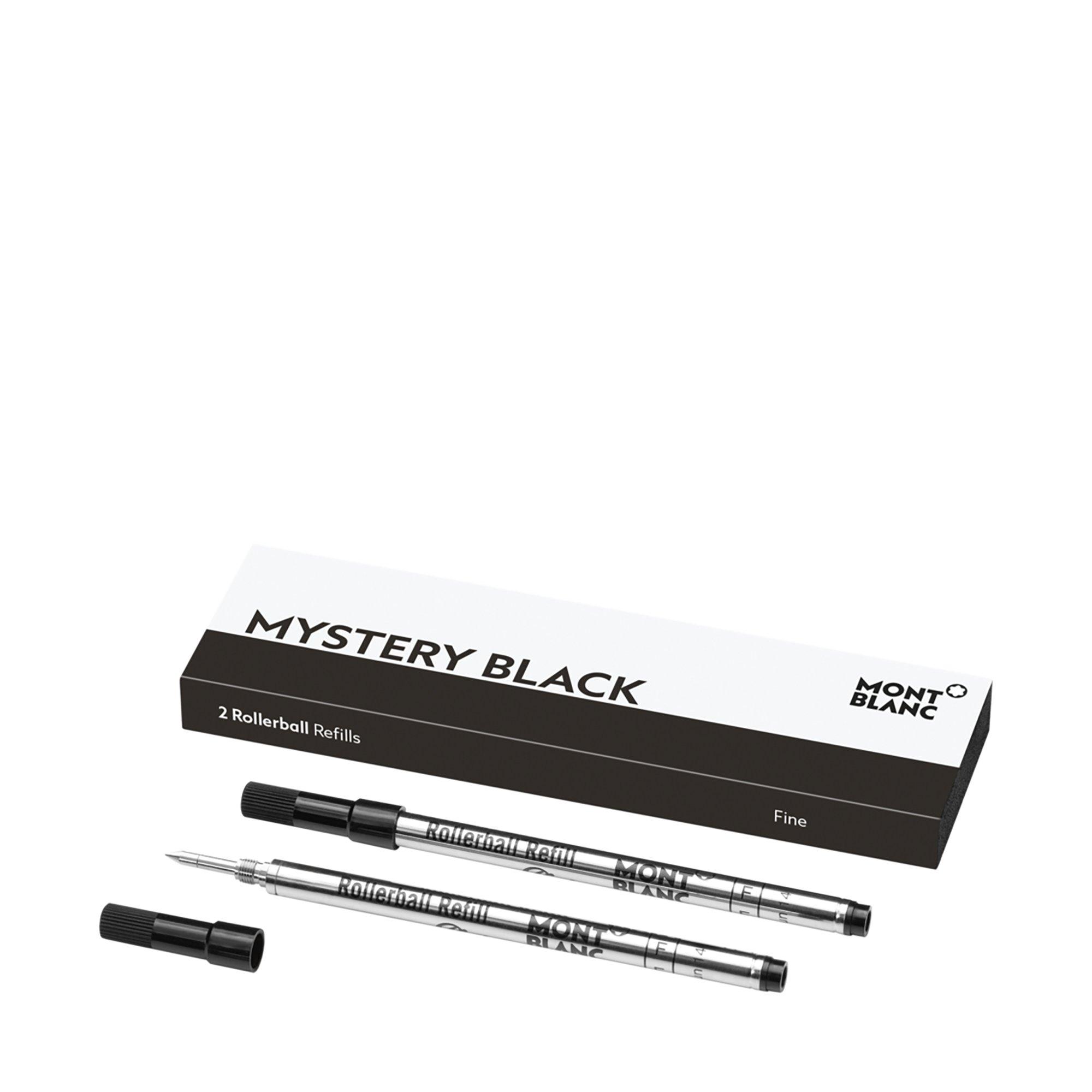 Deux mines de rechange de la marque MONTBLANC. L'ensemble comprend deux recharges de roller (F) dans la couleur Mystery Black.