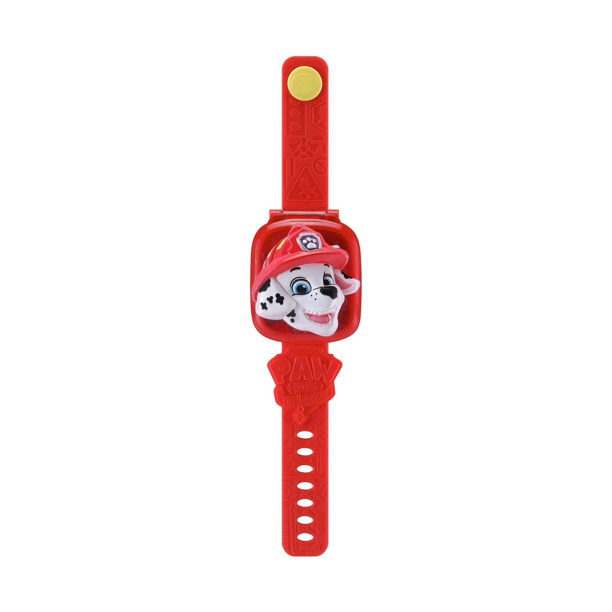 Mit der PAW Patrol auf zu neuen Lernabenteuern! Tolle Lernuhr mit vielen Funktionen und Lernspielen passend zum 2021 erscheinenden PAW Patrol Kinofilm. Mit coolen Animationen und der Originalstimme von Ryder, dem Anführer der PAW Patrol. 3D-Cover mit dem Gesicht von Marshall. 10 PAW Patrol Ziffernblätter Wecker mit 3 möglichen Wecktönen, Stoppuhr, Timer, Kuckucksuhrfunktion (ertönt zu jeder vollen Stunde). 4 vorinstallierte Lernspiele zu den Themen: Zahlen vergleichen, Zahlensequenzen, Gedächtnis und Reaktionsvermögen. Menüführung über Tasten an der Seite. Bei geschlossenem Deckel und Drücken der Ok-Taste ertönt ein PAW Patrol Spruch. Benötigt CR 2450-Knopfzelle (Demobatterie enthalten). Kindersicheres Batteriefach und Abschaltautomatik