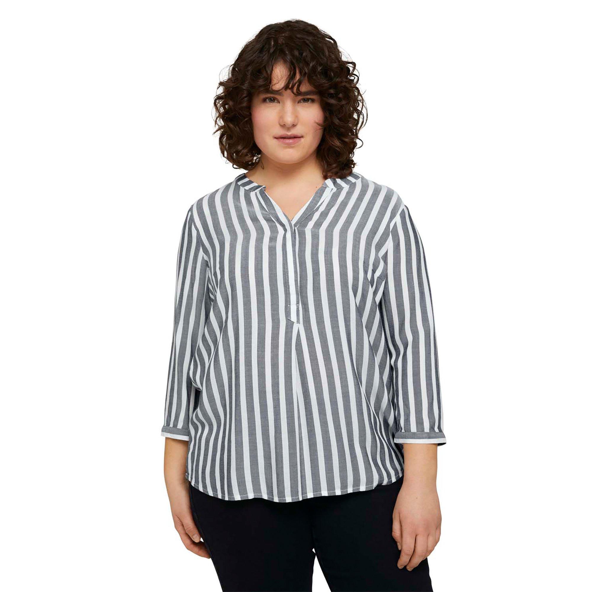 Ce chemisier Henley présente un design rayé, offrant un look marin. Il est fabriqué en viscose durable et fine et possède des manches 3/4.