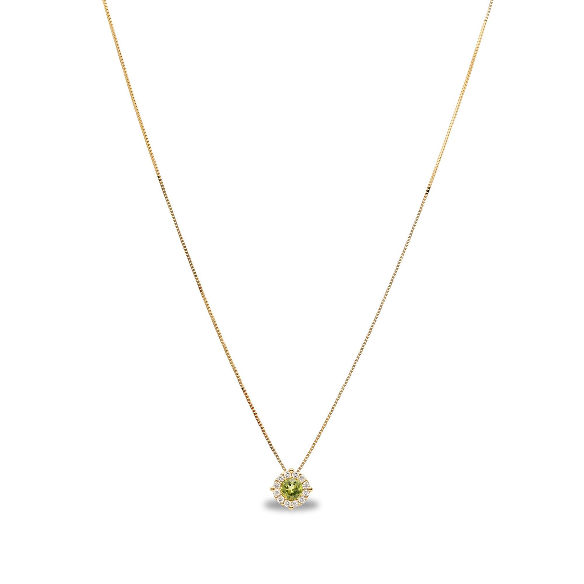 Le magnifique collier de L'Atelier Gold 18 Karat by Manor se compose d'un fin collier vénitien en or jaune et d'un pendentif rond. Le cœur se présente sous la forme d'un élégant péridot et est embrassé par une couronne de pierres de zirconium étincelantes.