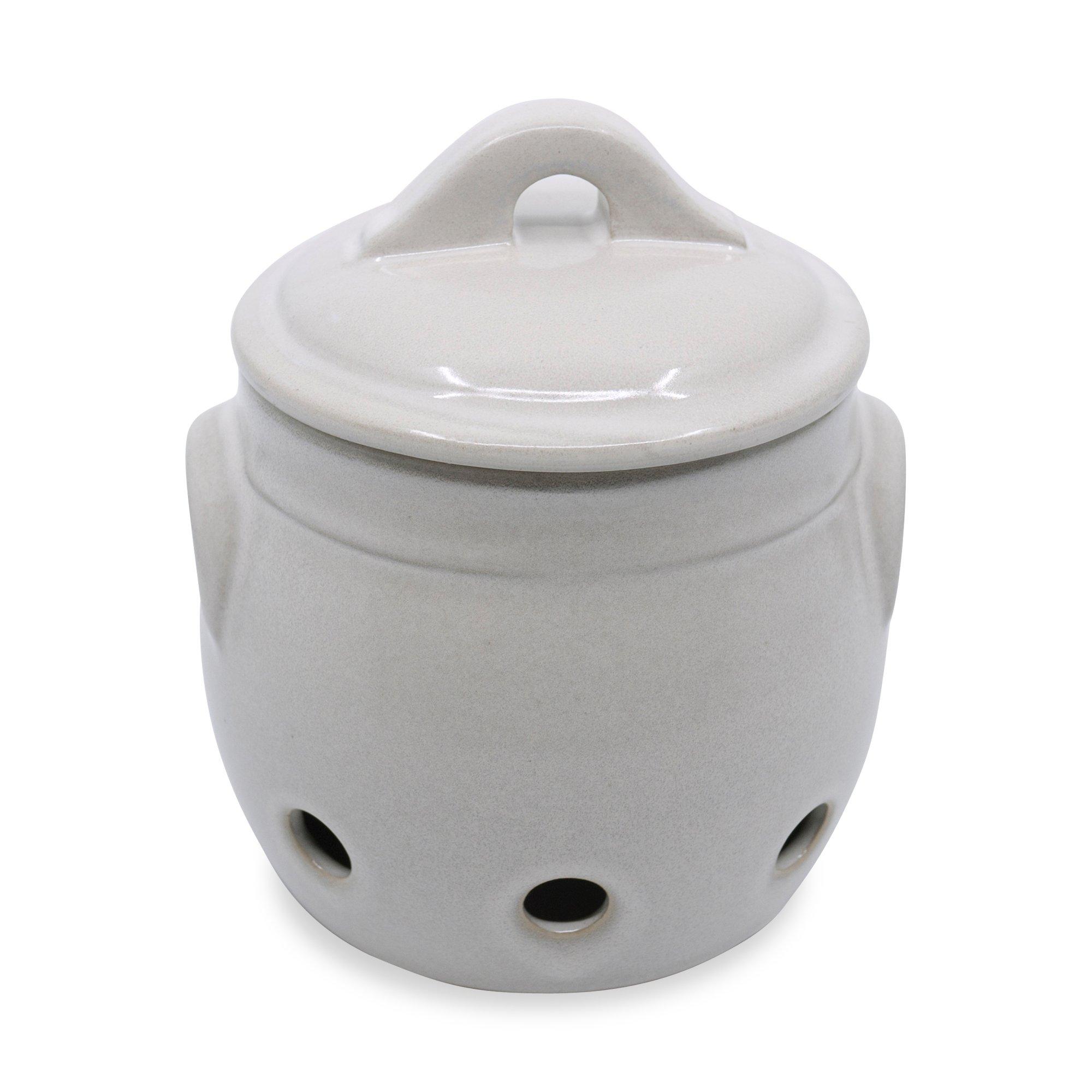 Un pot à ail traditionnel en poterie de Manor et un couvercle à trois trous.