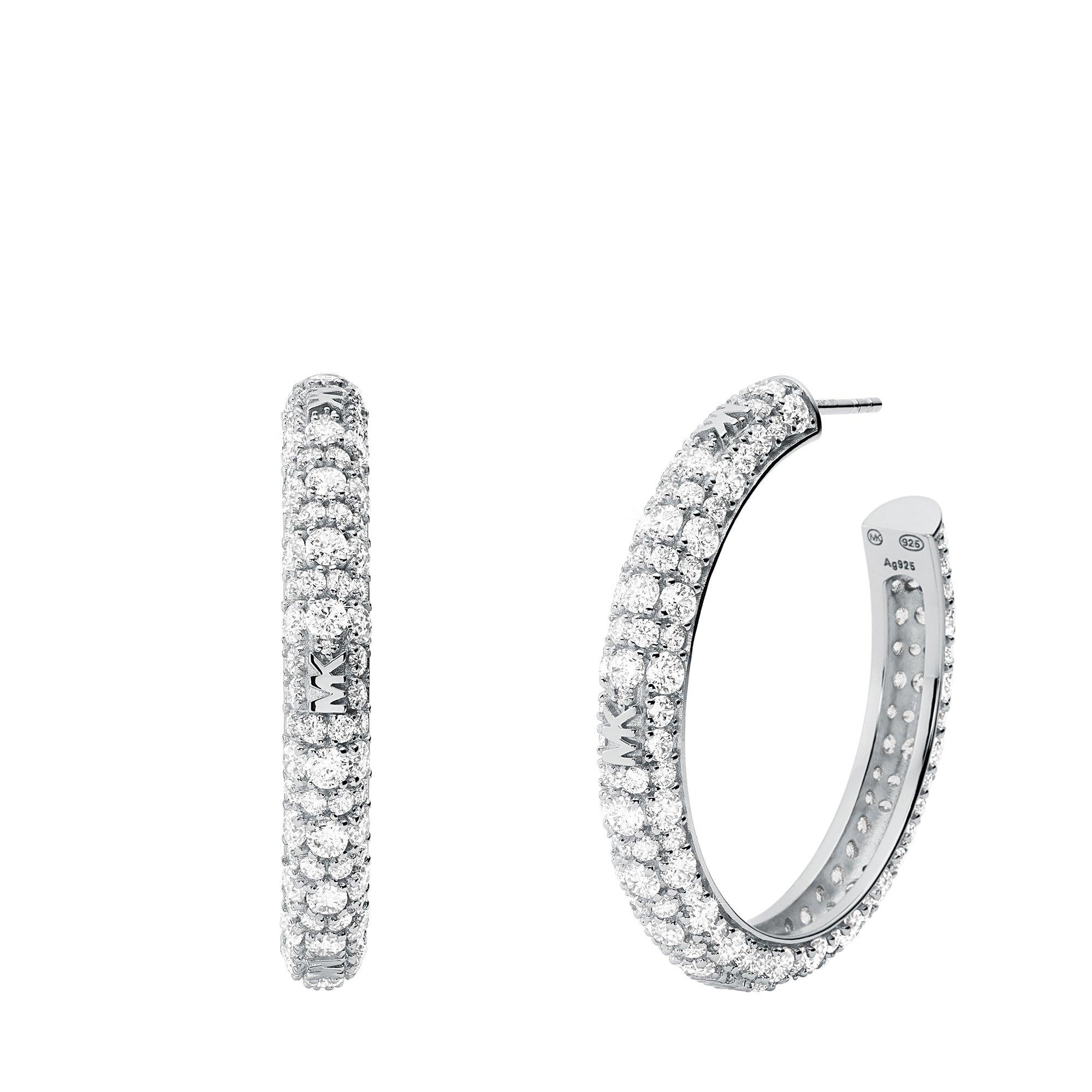 Ces magnifiques boucles d'oreilles de la marque MICHAEL KORS sont en argent sterling et sont ornées de pierres de zircone cubique étincelantes. Au milieu se trouve le logo MK – un véritable accroche-regard.