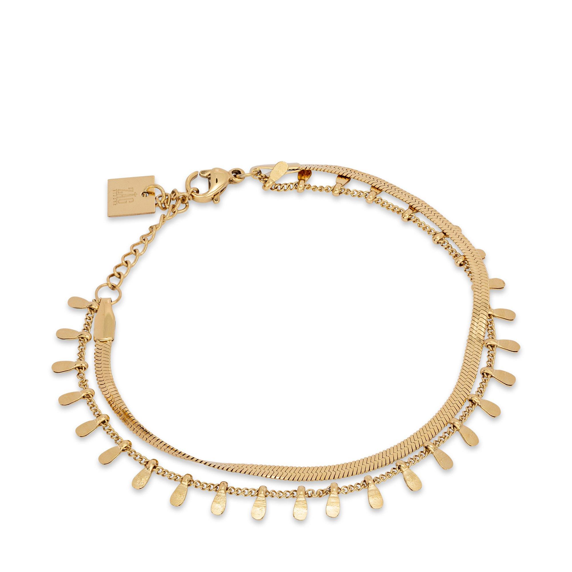 Le bracelet élégant de Zag Bijoux est doté d'un design à deux brins - il est composé d'une chaîne serpent et d'une fine chaîne d'ancrage avec pendentif en forme de goutte d'eau.