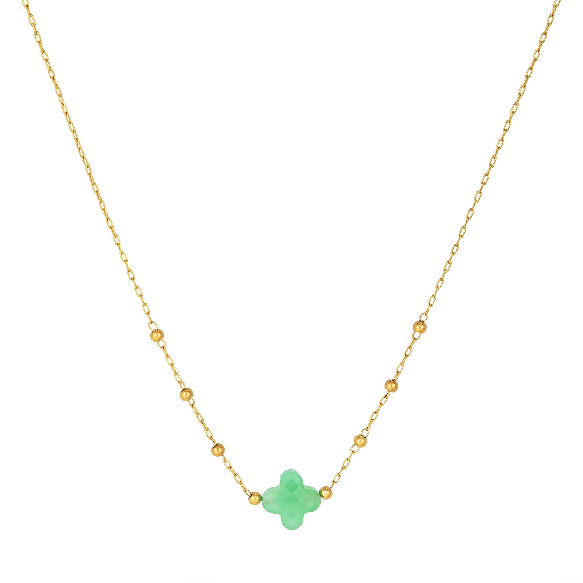 Collier avec une pierre fine en forme de petite feuille de trèfle sur une simple chaîne en acier de ZAG Bijoux.