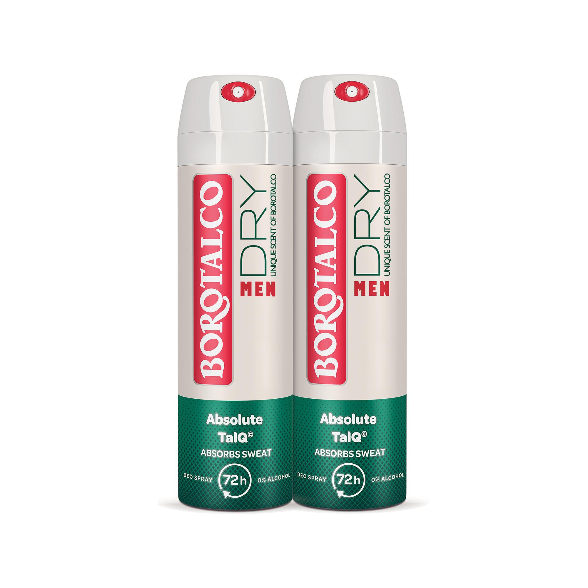 Borotalco Men Absolute Extra Dry avec protection anti-odeurs de 72h est disponible en deux parfums: Amber Scent et Unique Scent of Borotalco.