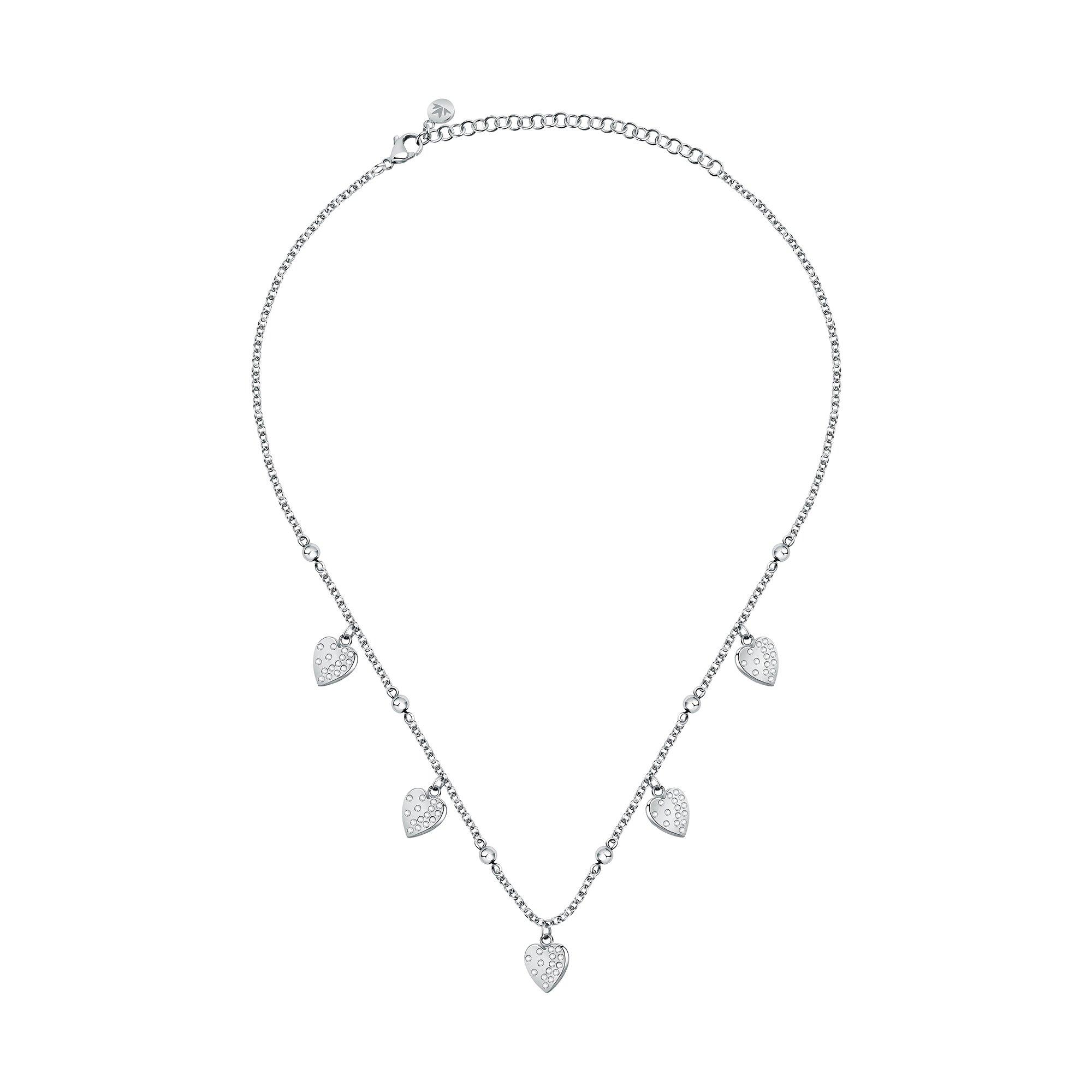 Ce charmant collier chaîne de la marque MORELLATO est en acier inoxydable et est orné de breloques cœur étincelantes. – Un vrai accroche-regard.
