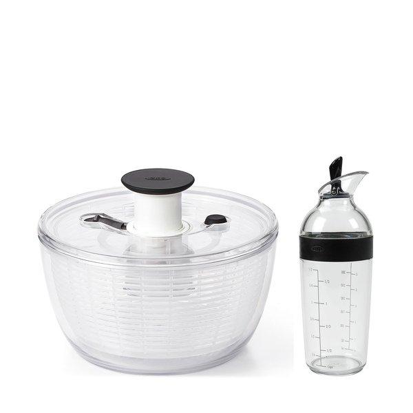 Ensemble essoreuse à salade pratique d'OXO avec essoreuse à salade et shaker à sauce de 5,8 litres.