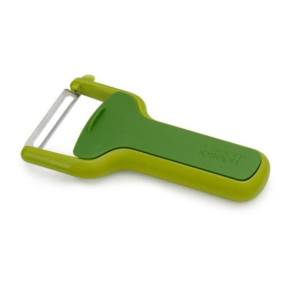 Cet éplucheur droit dispose d'un protège-lame pratique intégré dans le manche pour un rangement sûr dans votre tiroir de cuisine. Lame tranchante en acier inoxydable. Protège-lame intégré dans la poignée. Protège la lame et les doigts lors du rangement. avec ôte-œil de pomme de terre. idéal pour éplucher une grande variété de légumes. Passe au lave-vaisselle. Attention : lames tranchantes - ne pas approcher les doigts des lames pendant l'utilisation et le nettoyage. Sans BPA.