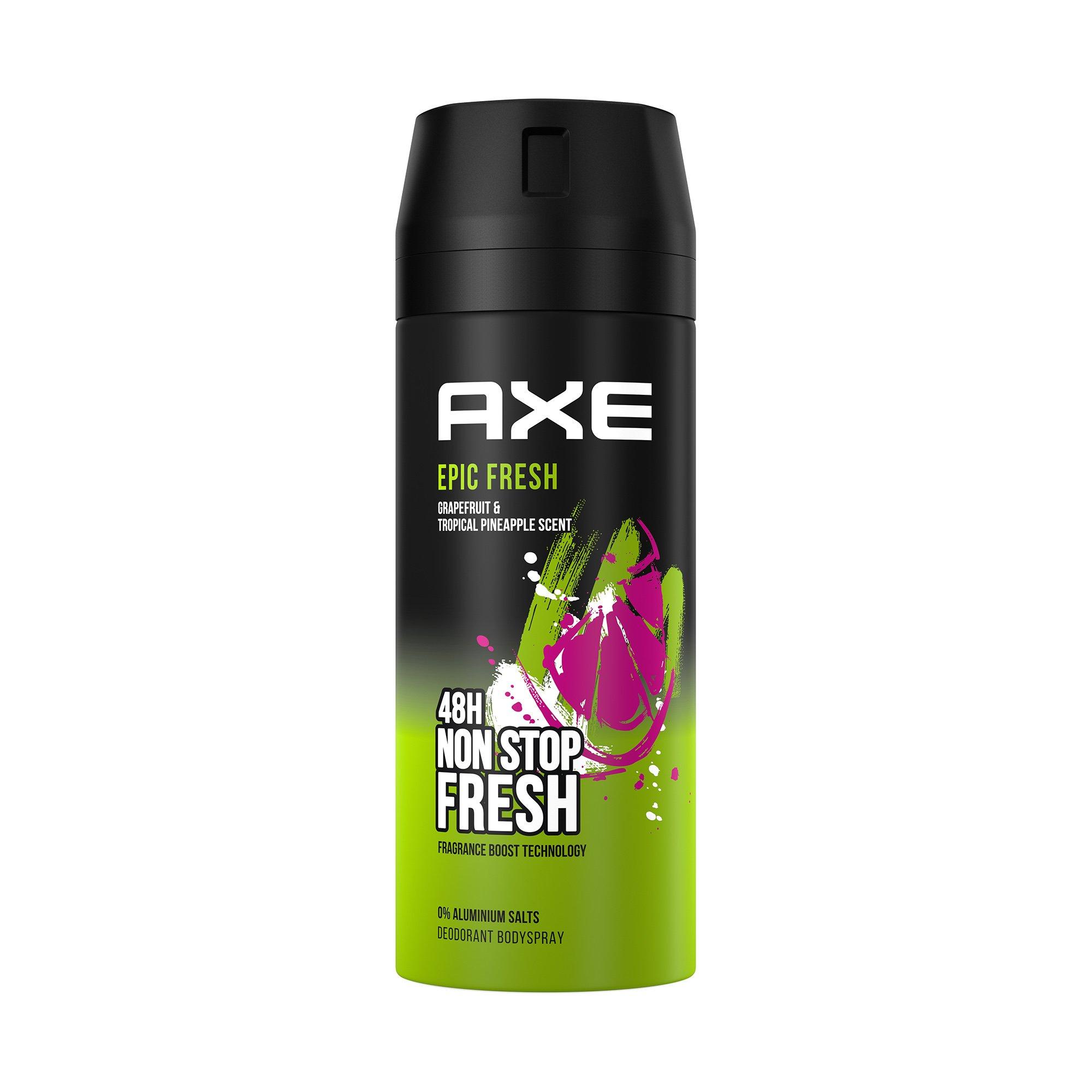 - Grâce à la Technologie Fragrance Boost, le parfum du Bodyspray AXE Epic Fresh est désormais authentique et durable.
