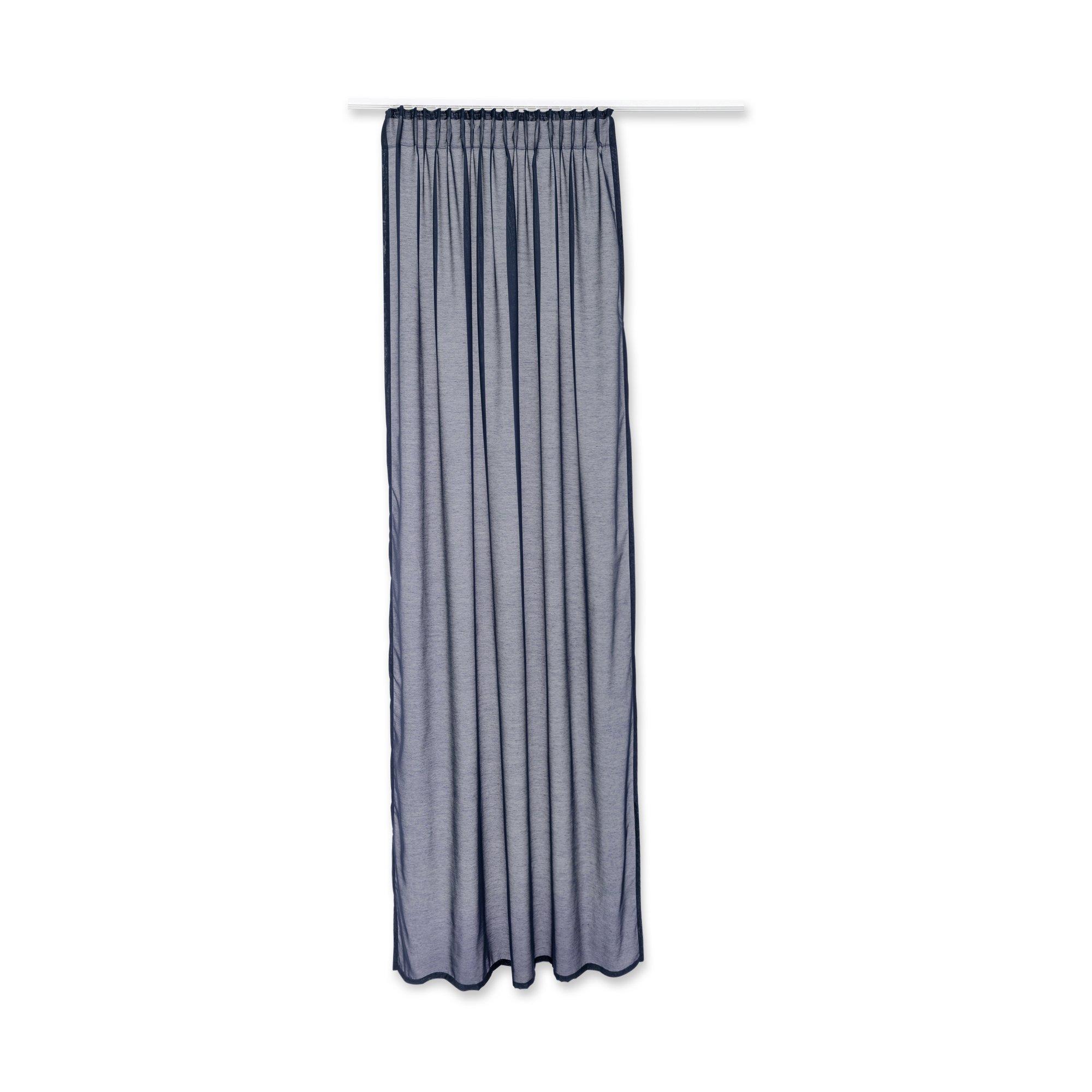 Rideau prêt-à-porter semi-transparent de Manor avec boucles cachées et ruban plissé, qui peut être raccourci sans couture et est disponible en différentes couleurs.