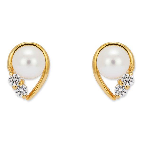 Boucles d'oreilles modernes en or 18 carats avec un design original en zirconium et perles d'eau douce de Puro.