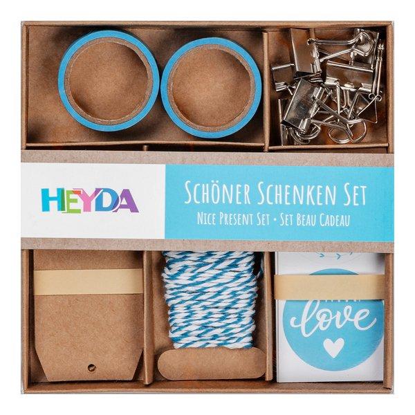 "Avec cet ensemble "" plus beau cadeau "" de Heyda, offrir est tout simplement deux fois plus plaisant. L'ensemble contient des bandes, des pinces et des autocollants, ainsi que des étiquettes-cadeaux et le cordon de couleur assorti pour créer l'emballage cadeau parfait à votre guise. "