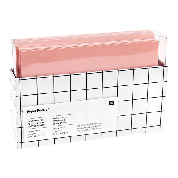 Le set de cartes au format B6 contient 12 cartes pliables et 12 enveloppes. Créez des cartes de vœux, des invitations ou des cartes de remerciement personnalisées avec ces cartes. Le set de cartes est livré dans une boîte solide avec couvercle en PET, qui sert également de rangement pratique.