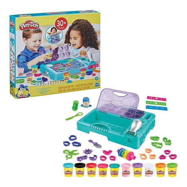 Le plaisir Play-Doh à emporter ! Avec la boîte créative de Play-Doh, les enfants ont leur propre endroit pour être créatifs. Tous les accessoires peuvent être rangés de manière pratique dans la boîte et les classiques Play-Doh intégrés offrent encore plus de plaisir. Ainsi, 9 formes différentes, comme des étoiles et des lunes, peuvent être pressées à partir de la pâte à modeler ou des coiffures amusantes peuvent être créées à l'aide de la tête de coiffure. La boîte contient plus de 30 outils de pétrissage plus 10 boîtes de Play-Doh de 56 g chacune, y compris 2 boîtes de pâte à confettis rose et blanche et 2 boîtes de pâte à paillettes rouge et verte. Avec autant de possibilités créatives, les enfants à partir de 3 ans y trouveront tout ce dont ils ont besoin pour laisser libre cours à leur imagination.