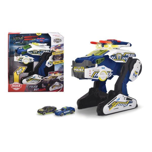 Le Police Bot est en fait une prison ambulante. Elle peut s'ouvrir à l'arrière pour accueillir les petites voitures en métal fournies et les ranger en toute sécurité. La lumière et le son ainsi qu'une roue libre pratique incitent à jouer - le jeu devient ainsi encore plus réaliste et bien plus passionnant.