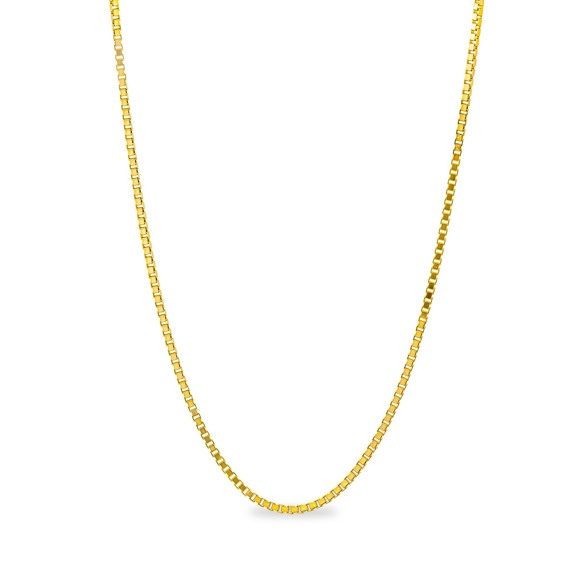 La délicate chaîne vénitienne de L'Atelier 18 Karat Gold by Manor est en or jaune 18 carats. Elle se distingue par la forme rectangulaire caractéristique des différents maillons. Lors du mouvement, les éléments fins se déplacent les uns dans les autres, ce qui confère au bijou un aspect stylé. Il mesure 55 cm de long au total.