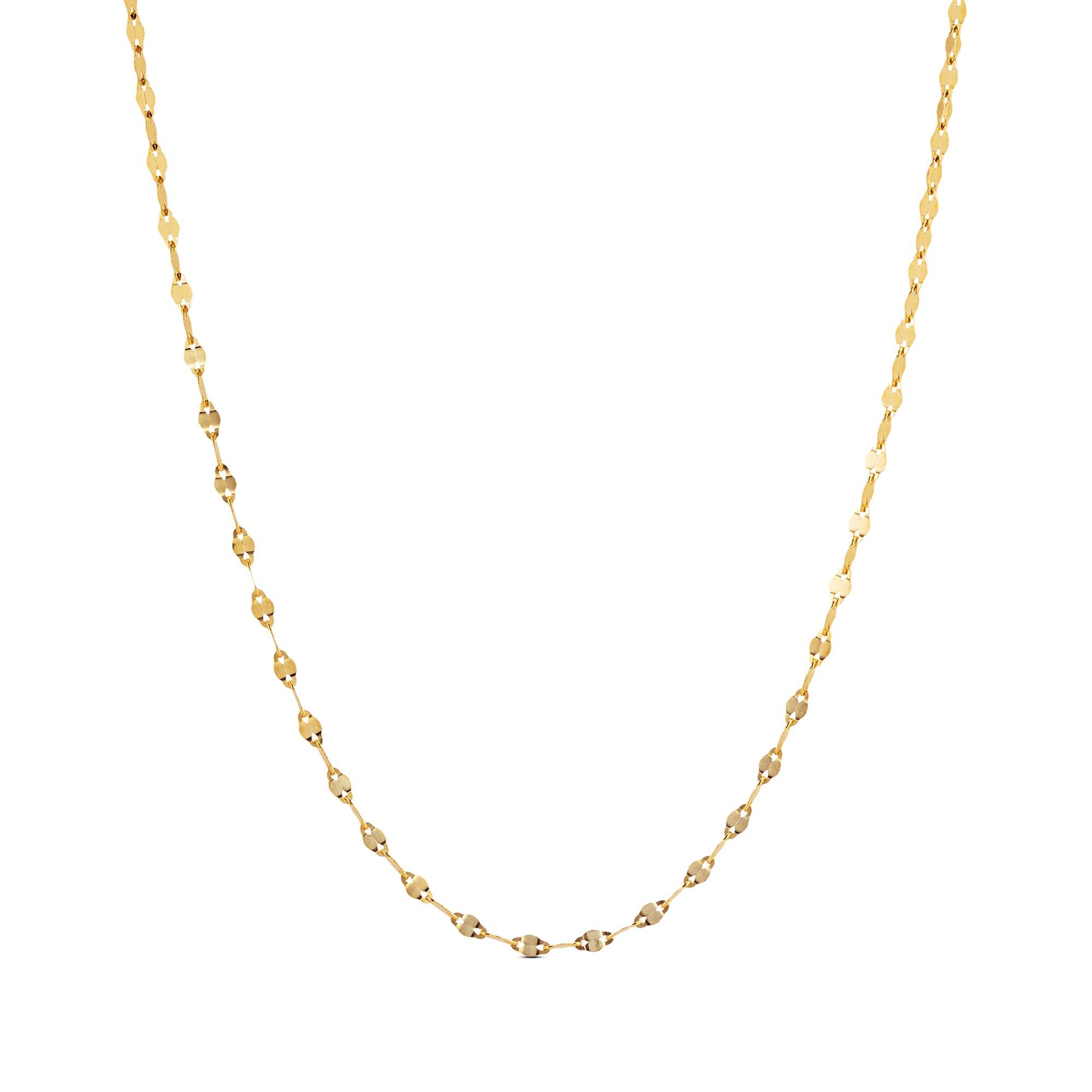L'élégant collier de L'Atelier 18 Karat Gold by Manor est en or jaune 18 carats. Il se distingue par les plaquettes caractéristiques qui sont joliment reliées les unes aux autres et créent un merveilleux jeu de brillance lors du mouvement. Elle mesure 45 cm de long au total.