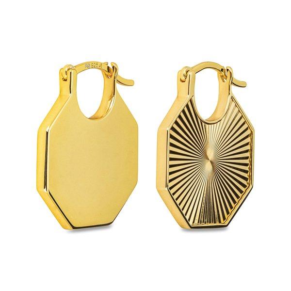 Ces boucles d'oreilles plaquées or de L'Atelier Sterling Silver 925 surprennent par leur structure en relief - ici le soleil se lève.