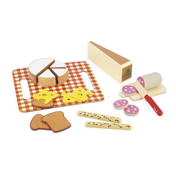 Apérooo ! Partagez un moment convivial avec voter enfant grâce à ce set parfait pour faire comme les grands. À l'aide de son plateau votre enfant vous fera découvrir différents fromages : Camembert, Emmental, Comté … certifié AOP ! Le tout accompagné de pain de mie aux céréales ou de gressins pour ceux qui préfèrent. Et bien sûr un saucisson, facile à trancher grâce au couteau Janod !