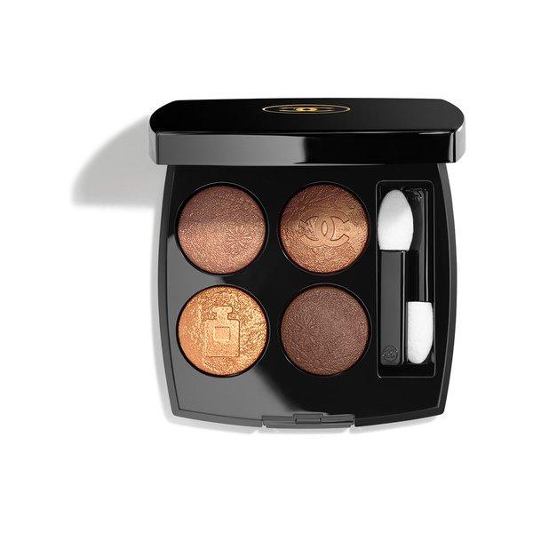 Pour sa nouvelle Collection Holiday 2022, le Studio de Création Maquillage de CHANEL rend hommage à cet aimant magnétique qui est aussi l’icône de la dernière campagne du parfum N°5 : la lune.<br><br>Source inépuisable de rêve et de mystère, elle accompagne les renaissances, les métamorphoses. De l’ombre à la lumière, de l’épure à l’opulence, de l’ambre aux rouges en passant par les ors, l’univers de la lune et du mythe s’enlacent dans une féerie moderne. <br><br>Pour cette fin d’année, demandez la lune avec CHANEL. <br><br>La CRÉATION EXCLUSIVE LES 4 OMBRES édition OMBRES DE LUNE est une palette de 4 fards à paupières, embossés du flacon de N°5 et du sigle de la Maison. Des nuances inspirées par les lueurs de la lune, cuivrée, or ambré, bronze et brune, qui passent du mat au nacré et créent un regard clair-obscur.