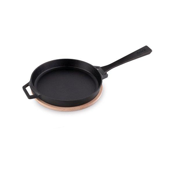 La poêle en fonte Ooni de haute qualité est idéale pour cuire viande, poisson, légumes et bien plus, particulièrement dans le four à pizza Ooni. Grâce à une poignée amovible en fonte spécialement conçue, il est facile de transférer la poêle chaude directement du four à la table. Pour un service élégant, elle est également accompagnée d’une planche de service durable en hêtre 100 %.