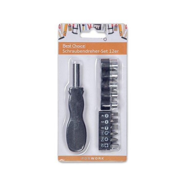 Ensemble de tournevis pratique de Best Choice avec 12 composants pour les réparations mineures. L'ensemble comprend - 1 tournevis - 5 inserts à douille - 3 inserts à fente - 2 inserts en croix - 1 embout pour insert à douille