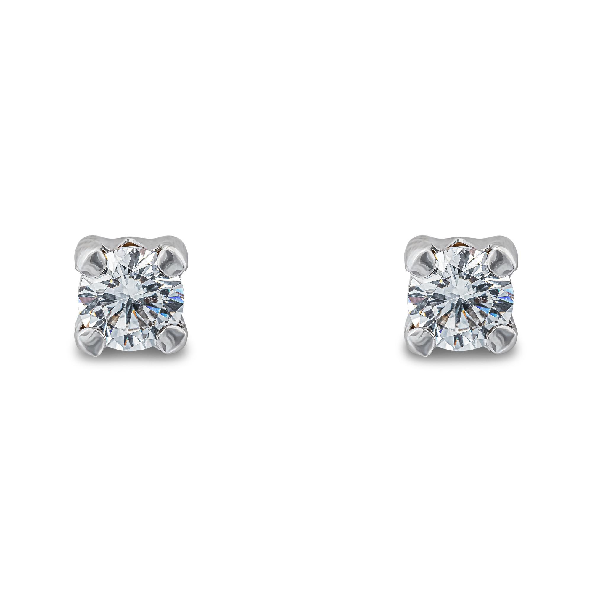Ces boucles d'oreilles de L'Atelier Gold 18 Karat by Manor sont en or blanc 18 carats. Le bijou à l'aspect classique porte du zirconium à merveille à facettes dans des montures passepoilées translucides qui reflètent tout le spectre de la lumière.