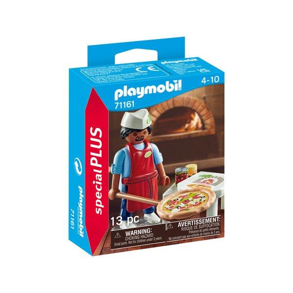 Les petits fans de pizzas s'amuseront beaucoup avec le set Spécial Plus "Pizzaiolo". La longue planche en bois permet de sortir la pizza du four chaud et de la placer avec précaution dans la boîte à pizza. Ensuite, elle part en voyage vers le prochain client affamé. Le set Special Plus contient une figurine PLAYMOBIL avec une toque de cuisinier, une table, des tomates en boîte, une boîte à pizza et d'autres extras. Le tablier et le couvre-chef peuvent être retirés. Une plaque de support est incluse dans l'article pour une meilleure stabilité de la figurine.