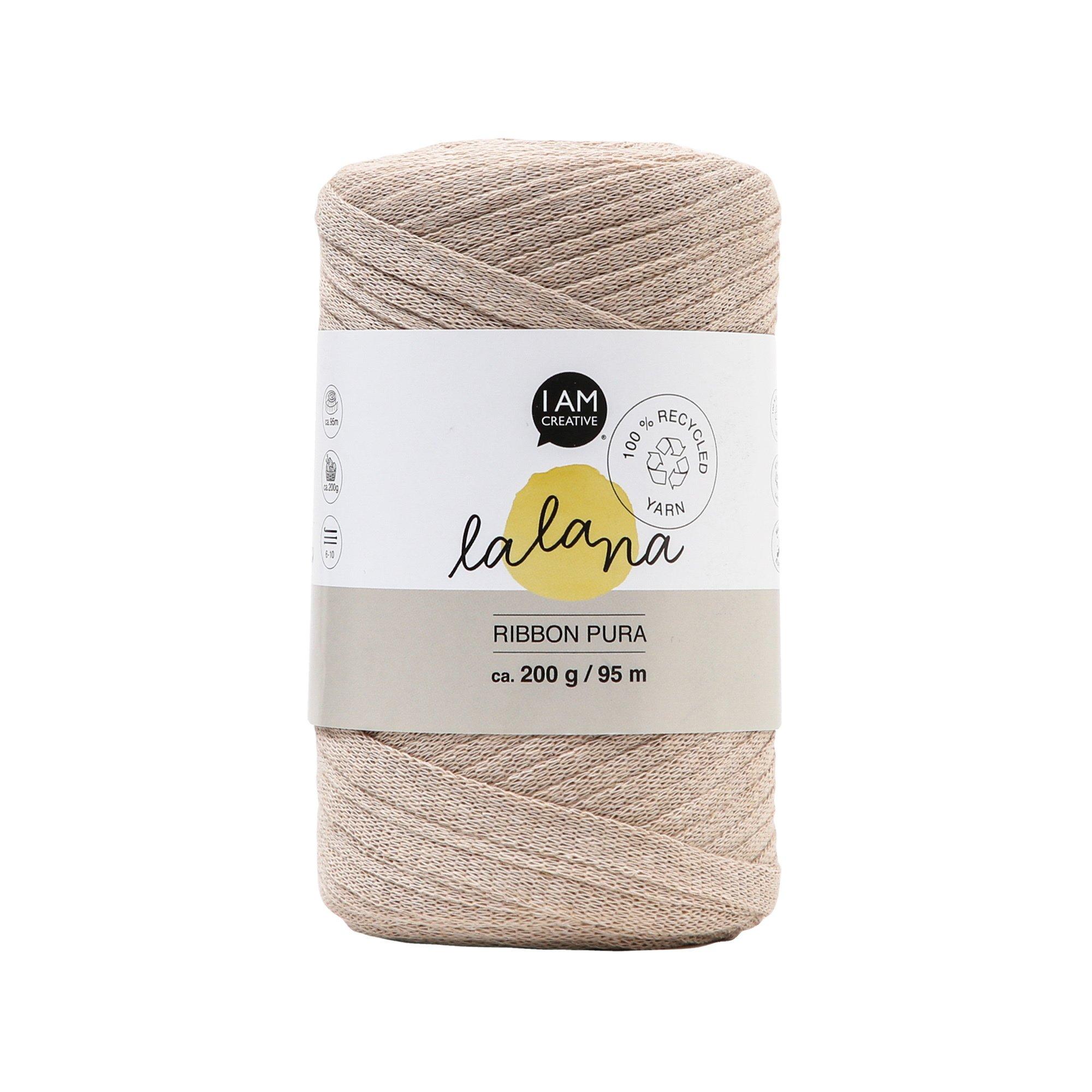 Lalana Ribbon Pura est un fil à ruban large composé de 80 % de coton et de 20 % de polyester recyclé, ce qui lui confère une structure douce. Il convient parfaitement pour les décorations d'intérieur comme les corbeilles, les sets de table, mais aussi les sacs à la mode, les chapeaux de soleil et les couvre-lits.