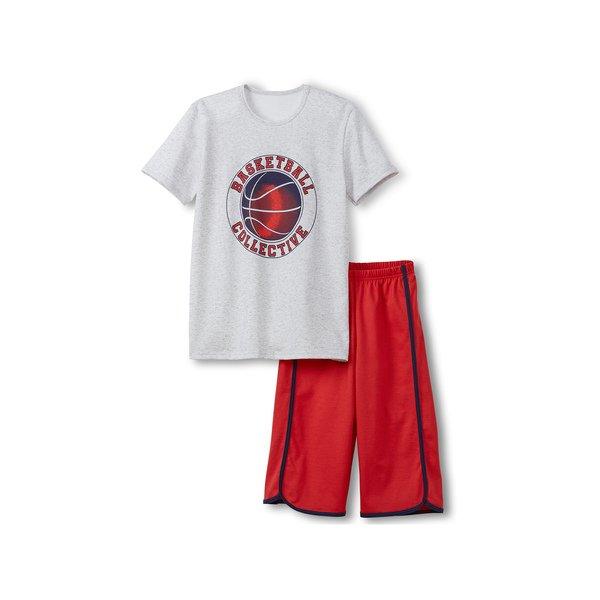 Le pyjama court de la série BOYS BASKETBALL de CALIDA fait battre le cœur des amateurs de basketball. Le coton biologique doux assure des nuits reposantes après une longue journée sur la place. L'accroche-regard est un ballon de basket imprimé graphiquement sur le t-shirt uni à manches courtes. Le short de coupe plus longue avec des coutures contrastées bleu foncé complète le look sportif.