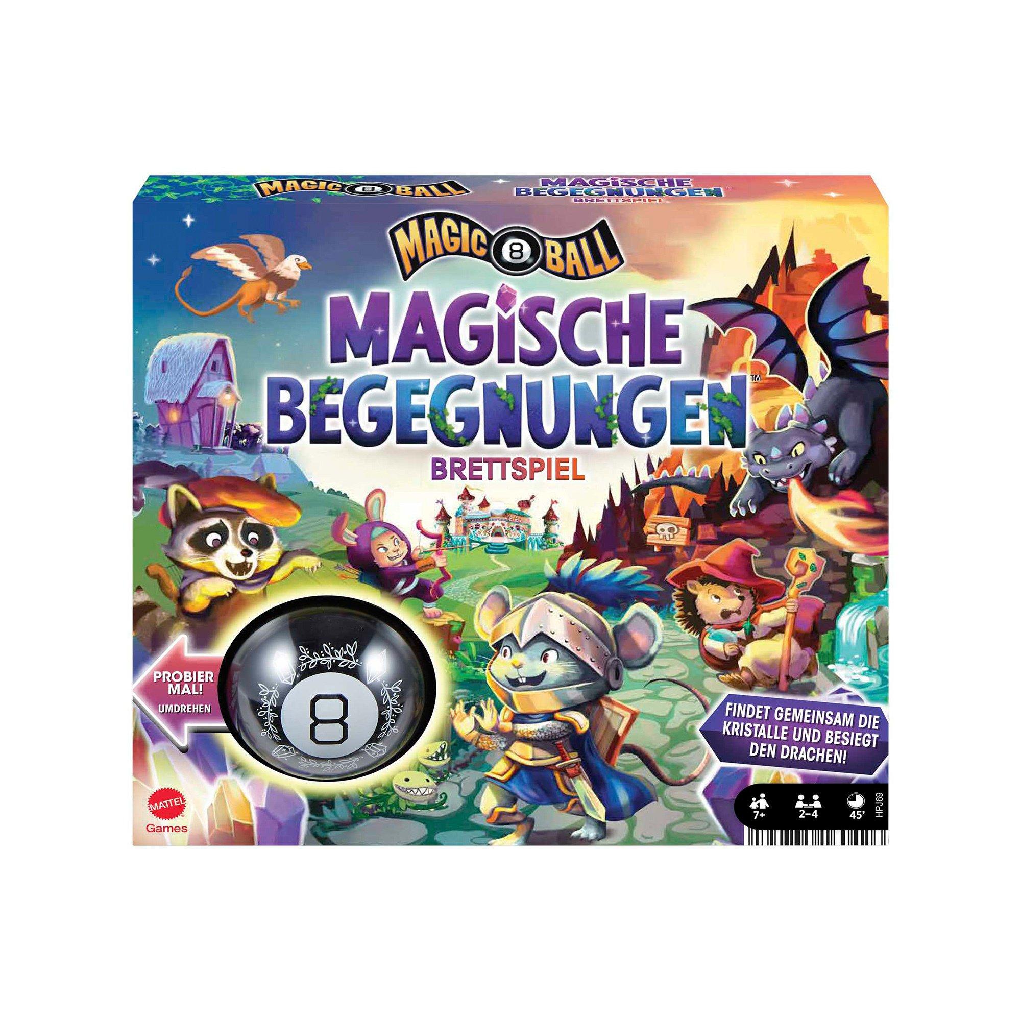 Avec le jeu de société Magic 8 Ball Magical Encounters, les joueurs voyagent dans un pays plein d'aventures et de mystères - parfait pour toute la famille. Le royaume est plongé dans le chaos tandis que Gadworm le dragon terrorise le pays. C'est maintenant aux héros du Waldland de sauver le royaume. Dans ce jeu de société coopératif avec la boule magique originale Magic 8 Ball, les joueurs doivent coopérer et vivre une soirée de jeu magique pour les enfants et les adultes à partir de sept ans. Sous réserve de variations de couleurs et de conception.