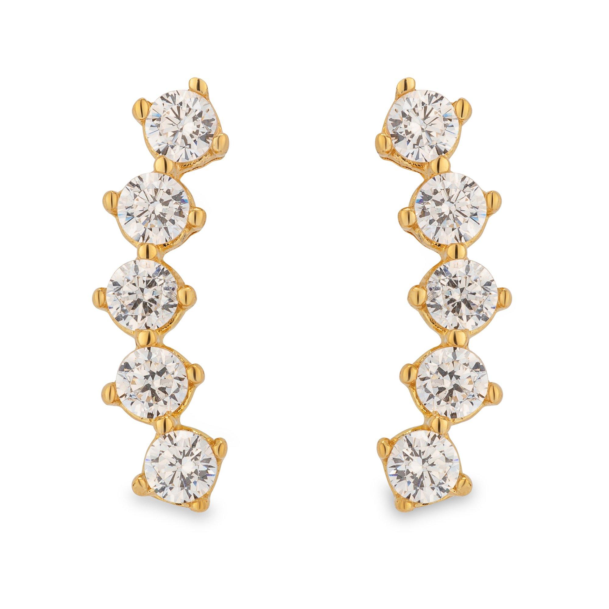 Ces boucles d'oreilles raffinées de Studio Marquise sont en or jaune 18 carats. Elles ont chacune cinq pierres de zirconium magnifiquement étincelantes, alignées sur un arc de cercle distinctif qui donne de l'originalité et du caractère au clou d'oreille.