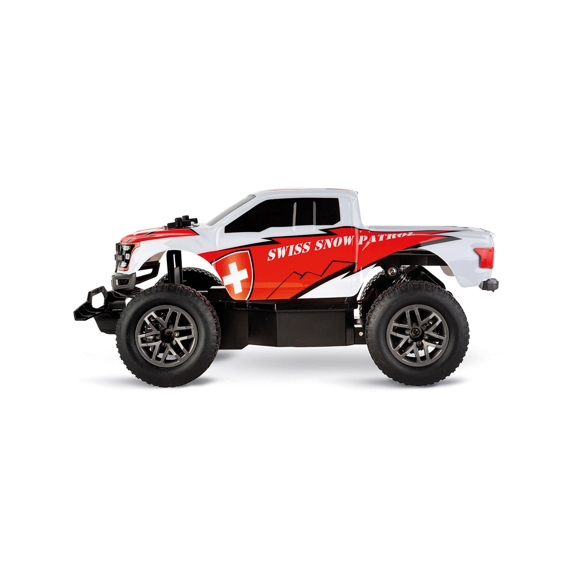 Le véhicule emblématique Ford F-150 Raptor se lance dans l'action avec un nouveau look chez Carrera RC. Ce modèle à succès s'est paré de ses plus beaux atours et brille maintenant dans un design jaune avec des touches créatives en bleu et en gris. Ainsi, les conducteurs à partir de 8 ans attirent tous les regards sur toutes les pistes. La carrosserie n'est pas seulement un succès sur le plan esthétique. Elle est également légère et flexible, tout en étant suffisamment robuste pour une utilisation en extérieur. Grâce à une vitesse de pointe pouvant atteindre 25 km/h et à un comportement de conduite et de direction numérique proportionnel, le Ford F-150 Raptor se faufile rapidement sur tous les terrains. Il est entièrement suspendu et équipé de pneus gonflables, ce qui lui permet de surmonter tous les obstacles. Grâce à sa transmission métallique de haute qualité et à sa batterie LiFePo4 durable, les conducteurs peuvent profiter longtemps de leur champion américain de plein air.