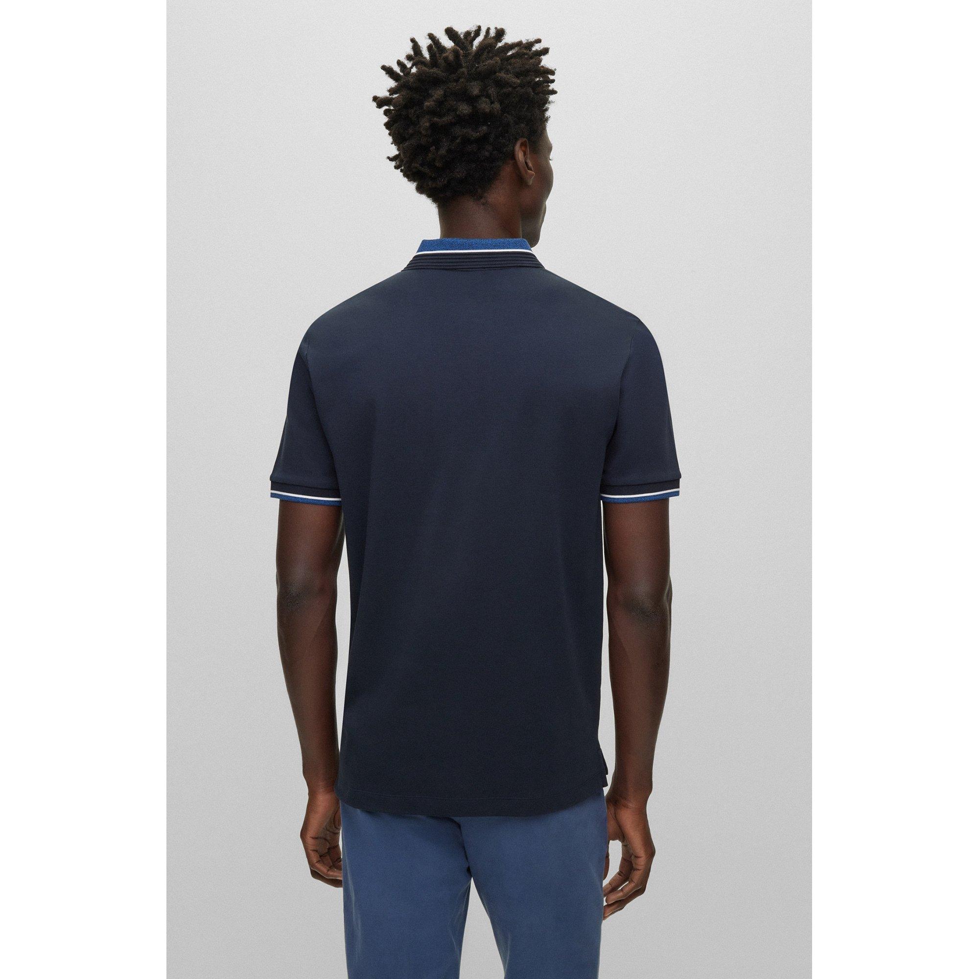 Le polo de Boss Black est confectionné en coton mercerisé. Des bordures de couleurs contrastées sur le col et les bordures de manches créent des accents sportifs.