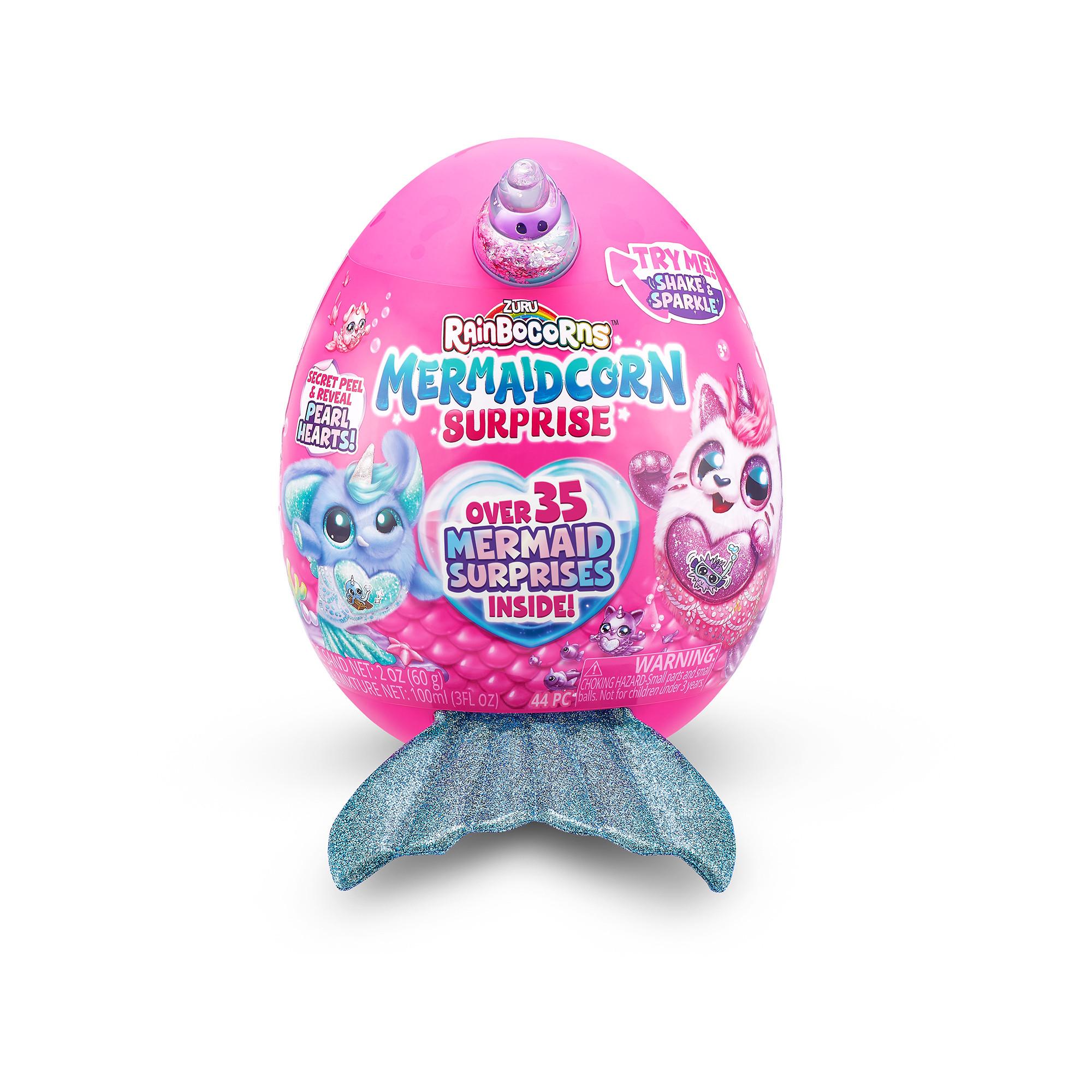 Contenu : Œuf magique, peluche sirène, corne de boule à neige amovible, sachet de sable magique (60g net), certificat, papier à gratter, 24 pierres précieuses, longue ficelle, bol à bulles, baguette à bulles, sachet de mélange à bulles (100ml net), 7 autocollants, 2 barrettes à cheveux, guide du collectionneur.