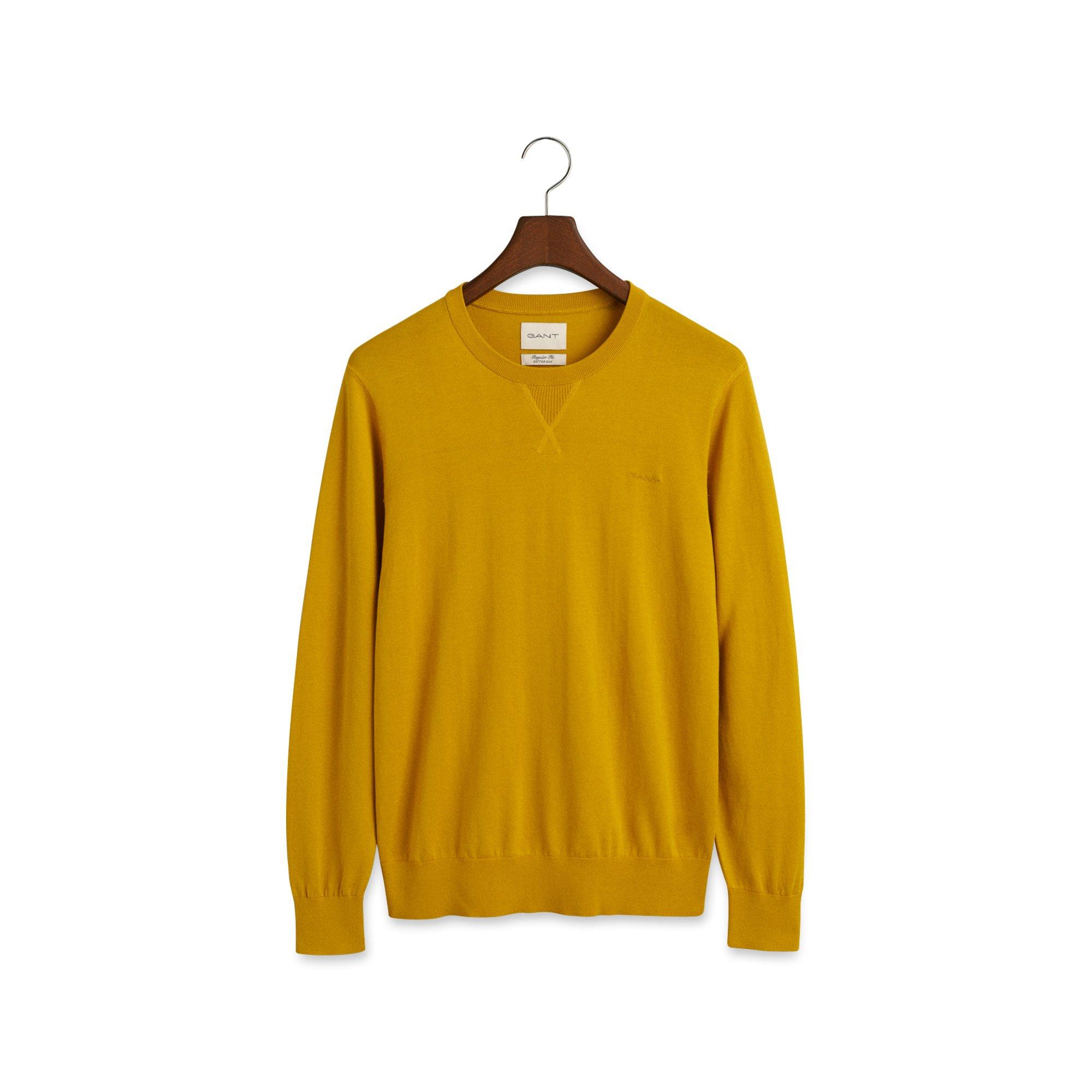 Ce pull polyvalent est tricoté dans un fin mélange de coton et présente une coupe slim. Il dispose d'un col ras du cou, de finitions côtelées au niveau du col, de l'ourlet et des poignets, et d'un logo GANT brodé sur la poitrine.
