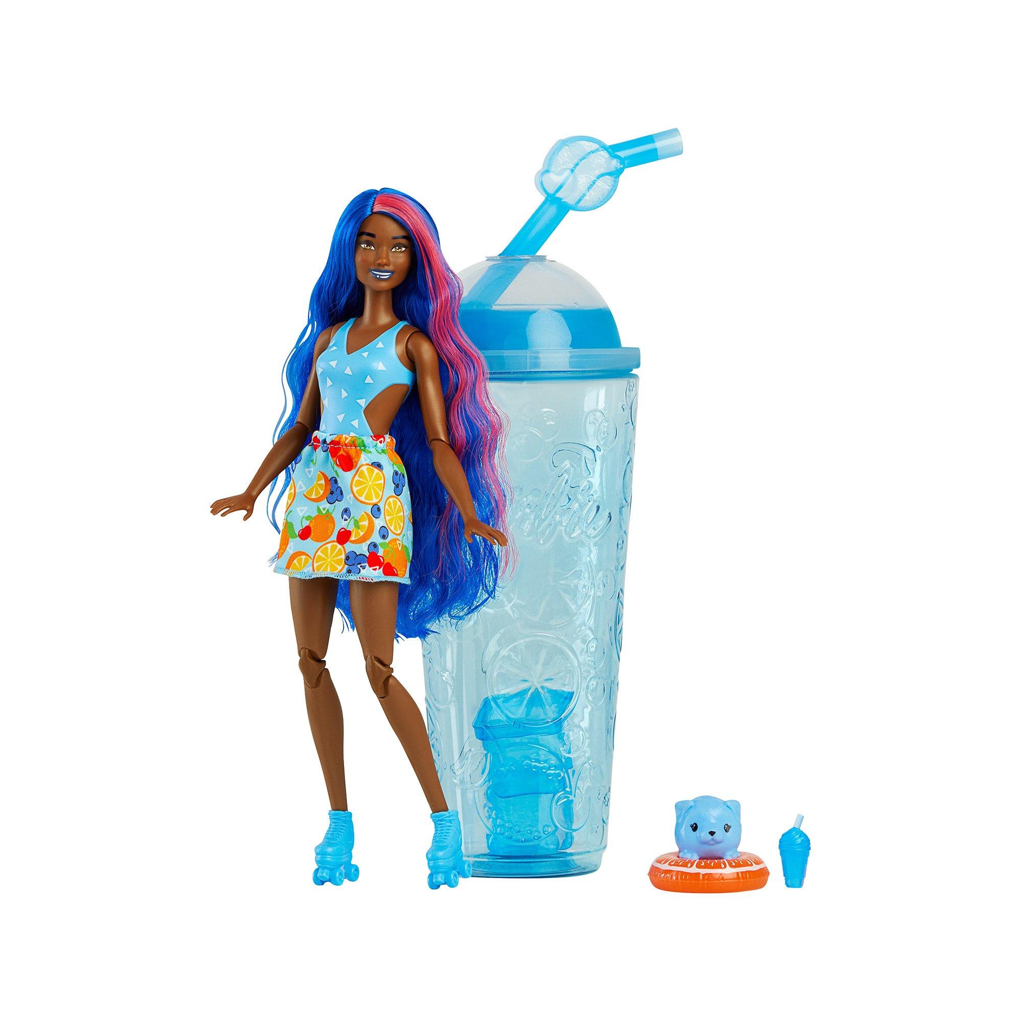 La paille permet de libérer un slime aux reflets métalliques du couvercle. Libère et dévoile ensuite la poupée Barbie au parfum fruité qui se trouve dans le slime. D'autres surprises se cachent dans les glaçons.