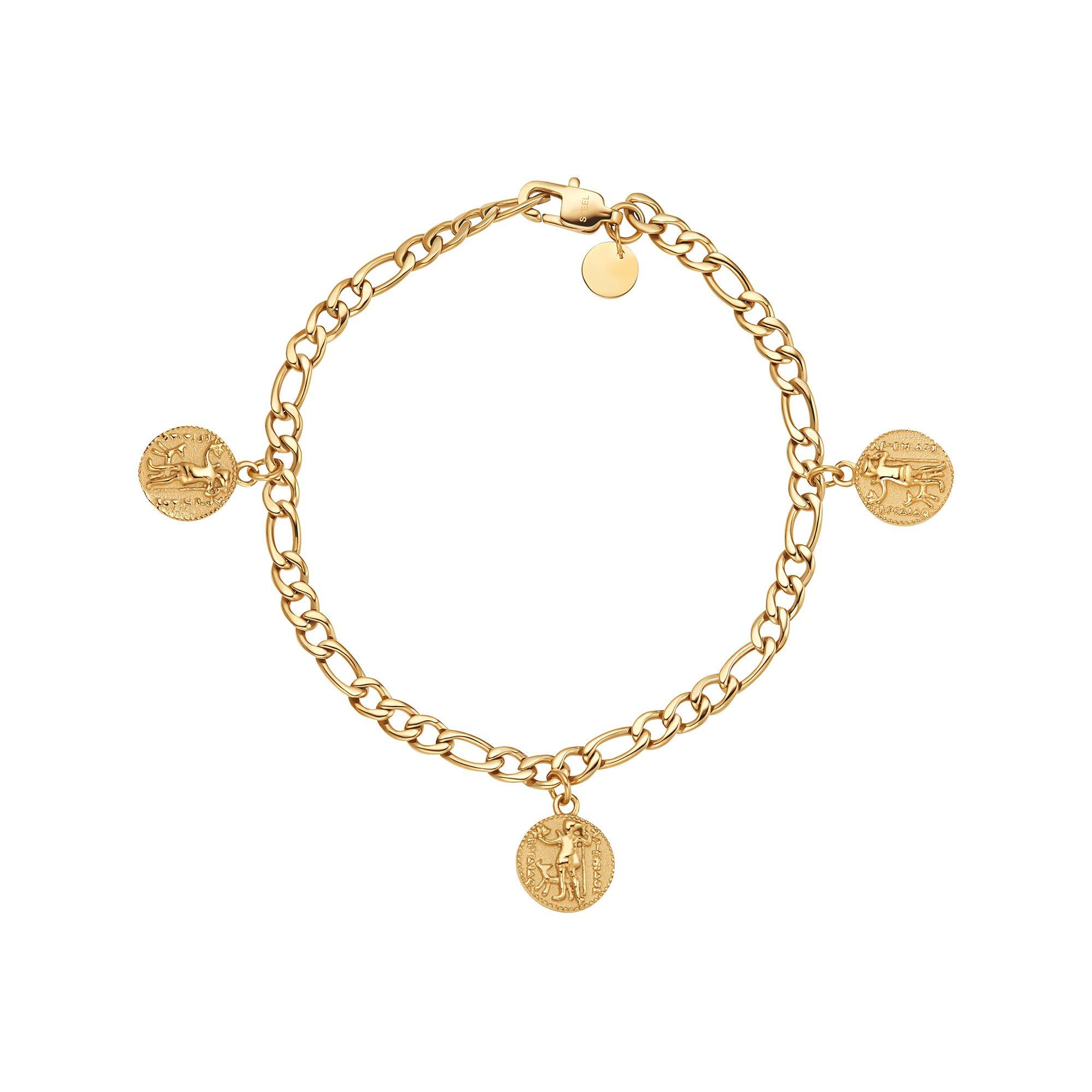 Dites bonjour à la série "Greek Coin" de L' Atelier ! Des bijoux au design grossier rencontrent des motifs antiques. Ces pièces se mettent particulièrement bien en scène avec des accessoires filigranes. Qualité & matériaux : Acier inoxydable 316L avec revêtement IP doré. L'acier inoxydable possède une surface extrêmement dure et résistante aux rayures, est facile à entretenir et est protégé contre le ternissement. De plus, ce matériau est très doux pour la peau et, grâce à l'absence de nickel, il est généralement bien toléré par les personnes allergiques.