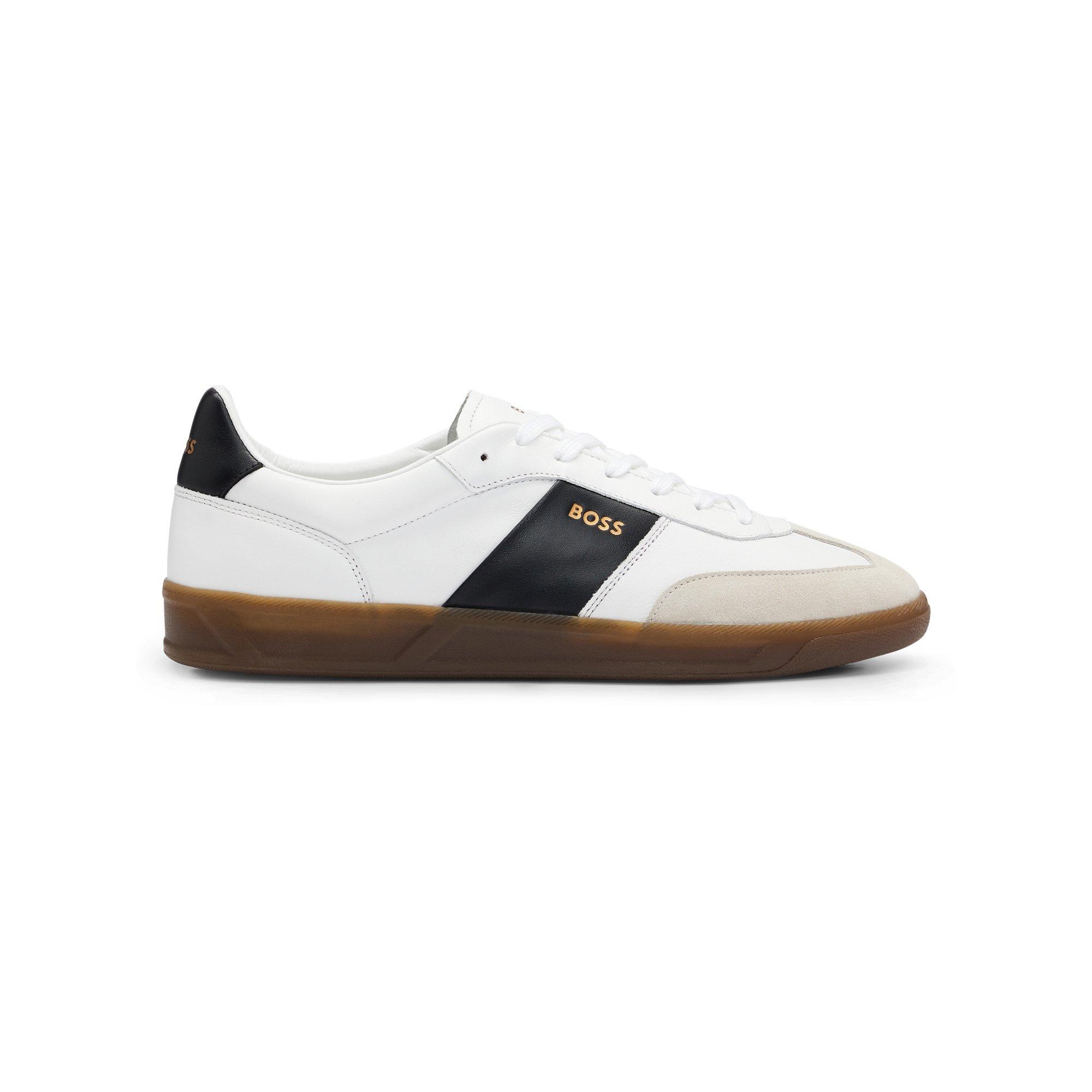 Ces baskets sont fabriquées en cuir lisse et en daim. Avec une silhouette rétro mince et un gaufrage de la marque, ces chaussures à lacets sont élégantes et polyvalentes avec un caractère sportif.