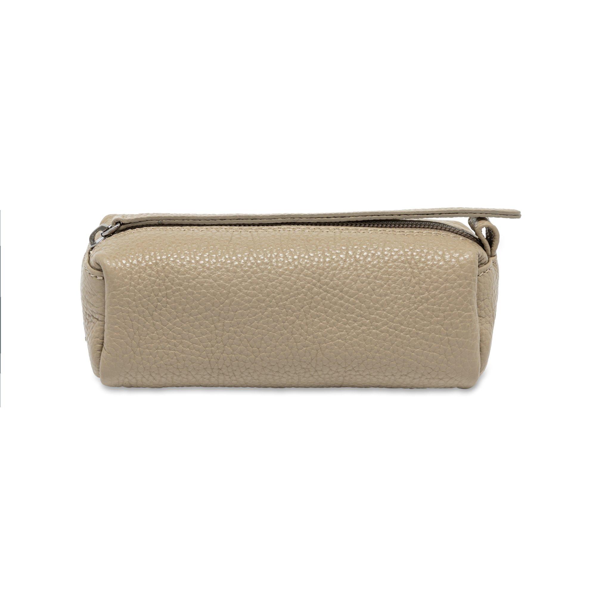 Matériau : cuir Dollarino Dimensions : 16 x 7 x 7 cm Poids : 80 g Volume : 0,8 l Particularités : Étui pour ustensiles de maquillage, lunettes, etc. | Fermeture à glissière | Doublure lavable