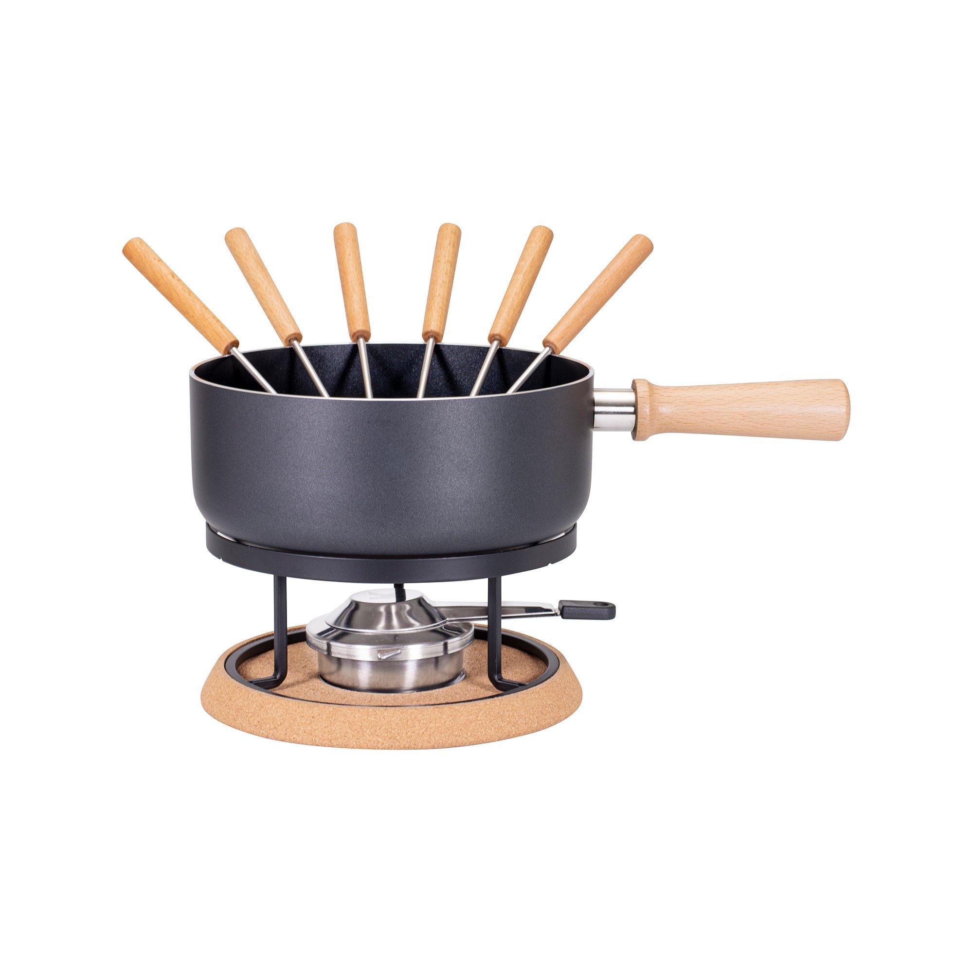 Le set à fondue au fromage "Bernina" comprend le poêlon en fonte d'aluminium de haute qualité avec revêtement anti-adhésif. Le poêlon se distingue par son design élégant avec un bord poli. La poignée en bois de hêtre offre une prise en main optimale. Cette poêle dispose d'un fond à induction performant et convient donc à tous les types de cuisinières.