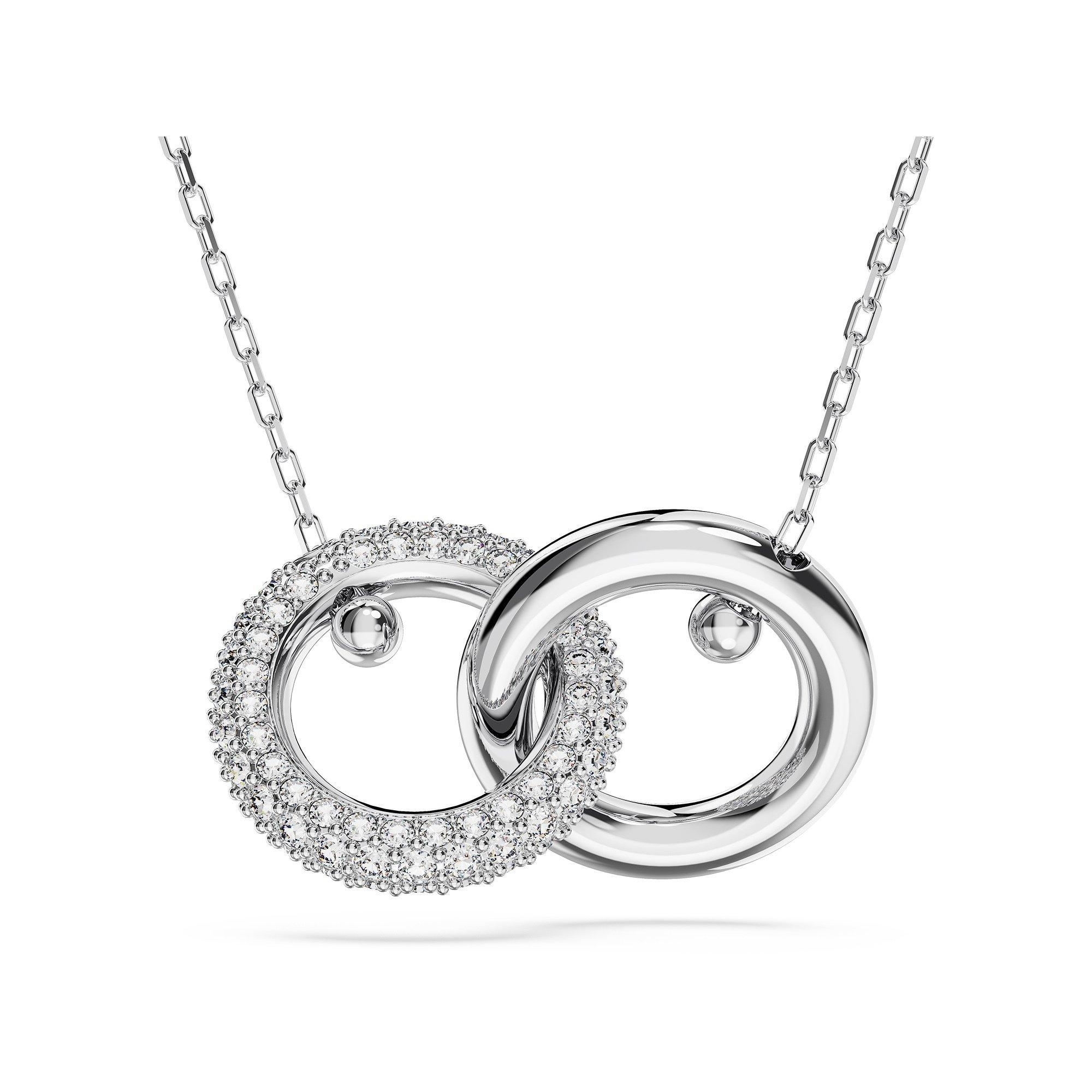 Faites le choix de l'harmonie et adoptez dès maintenant ce pendentif étincelant de la famille Dextera. Cette pièce en métal rhodié présente deux anneaux tubulaires entrelacés, dont un intégralement pavé. Sa chaîne délicate est ornée d’un Zirconia Swarovski à son extrémité, pour la touche de luxe en plus. Associant formes audacieuses et cristaux incolores rayonnants, cette pièce envoûtante habillera votre style de lumière.