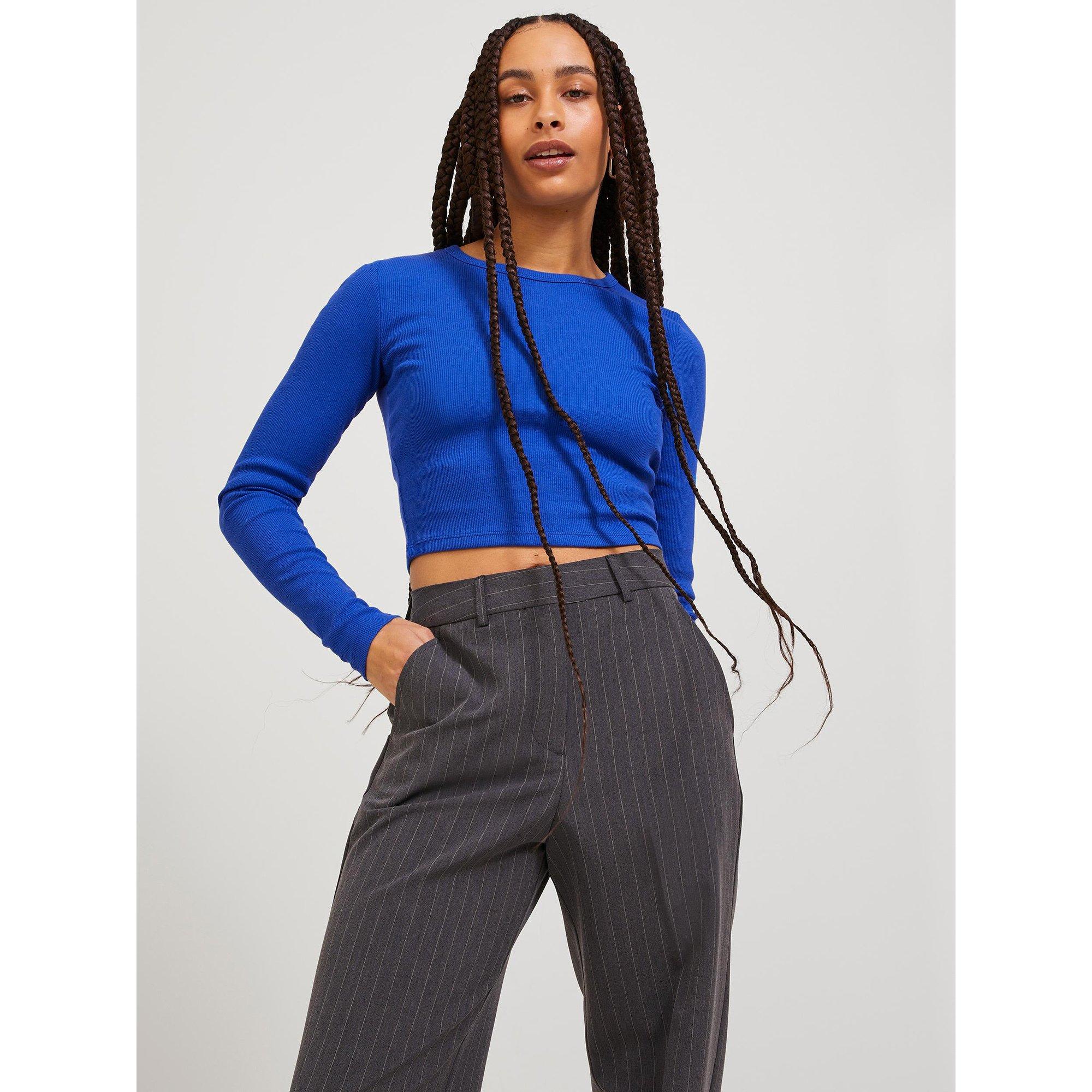 Ce haut à manches longues côtelé de JJXX avec une encolure ronde et une longueur raccourcie est le bon choix pour les looks de loisirs sportifs.