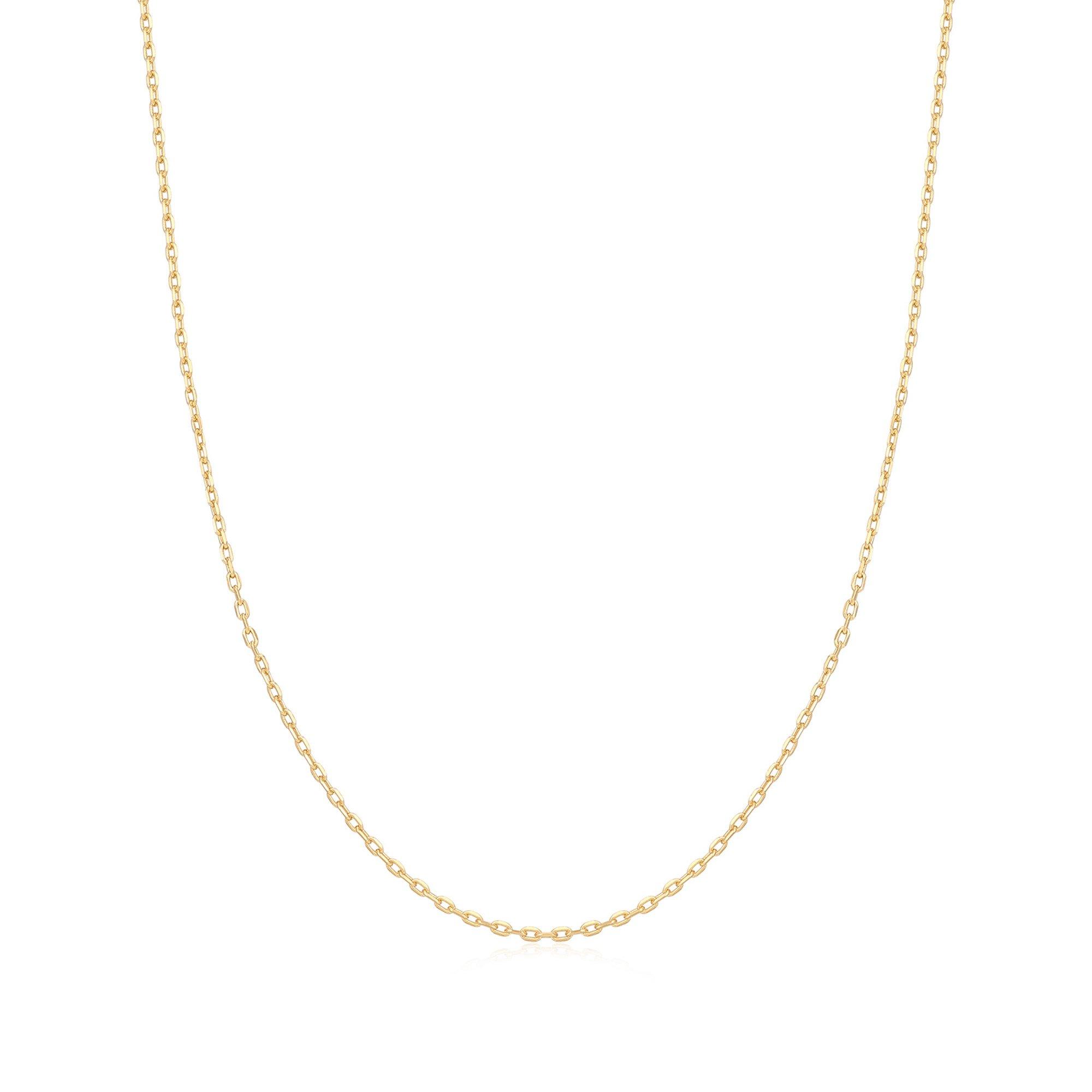 Cette mini chaîne à maillons en argent sterling 925 plaqué or 14 carats est la chaîne empilable parfaite pour un look superposé délicat.