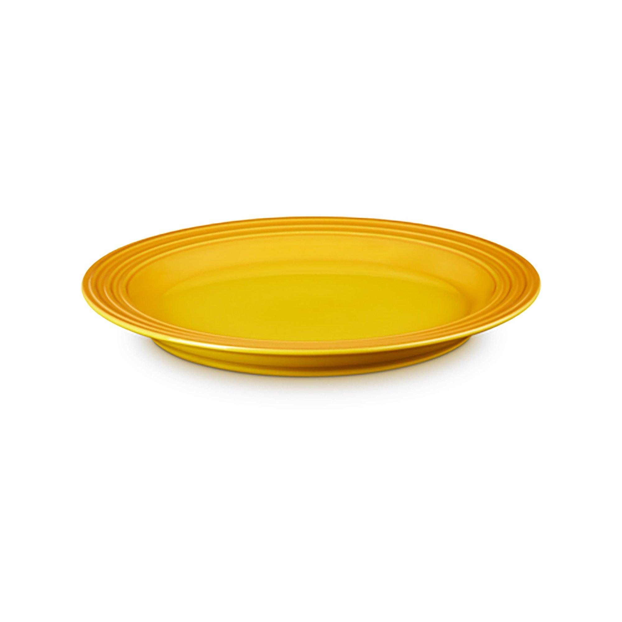 Faites-vous plaisir avec cette magnifique assiette plate, ou faites le bonheur d’un gourmand. Soigneusement conçue, cette assiette présente une base galbée pour retenir les jus de cuisson. Élégante et fonctionnelle avec le magnifique tracé emblématique de son rebord, elle est marquée de nos trois cercles signature Le Creuset.