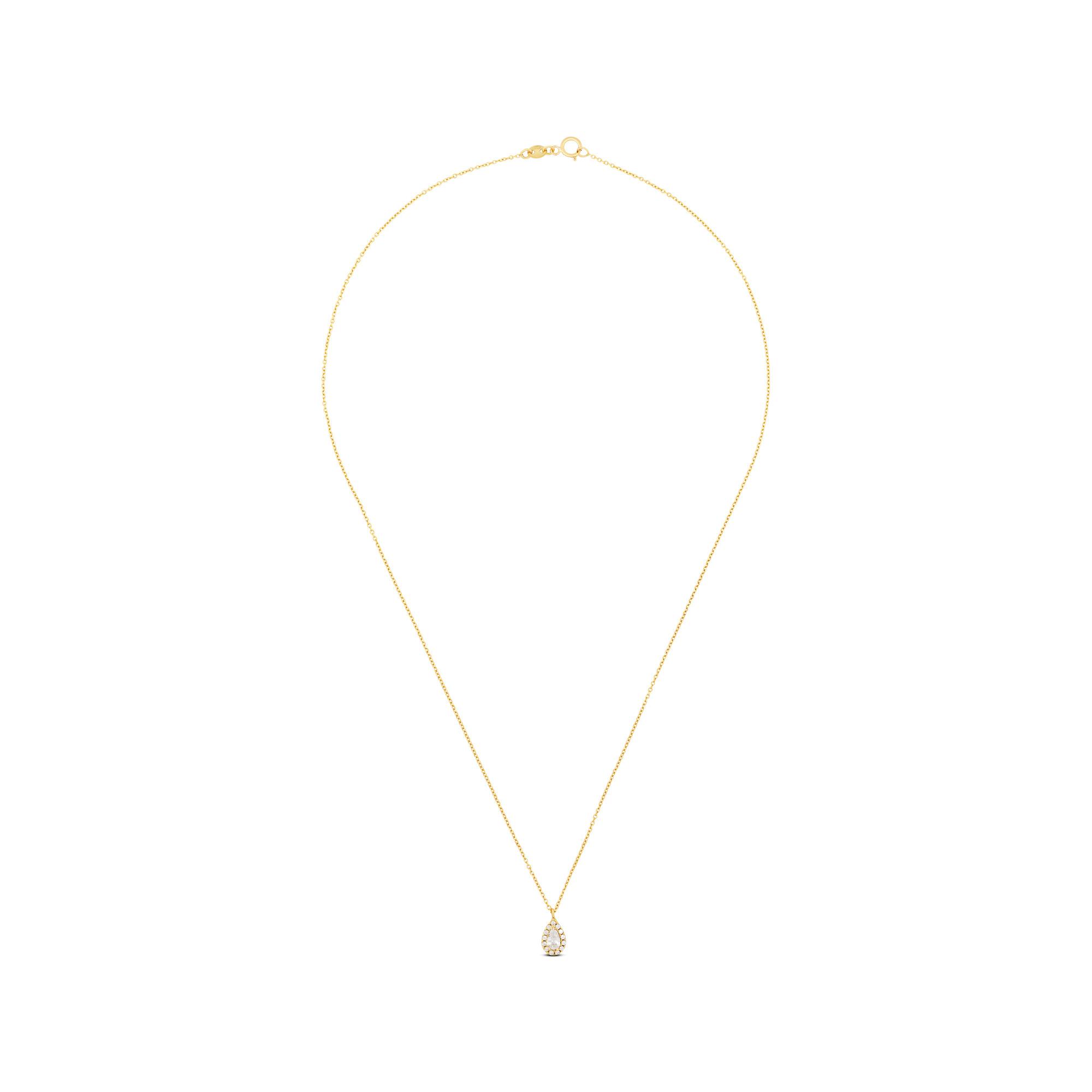 Cette chaîne de L’Atelier Gold 18 Karat by Manor avec un design délicat et le pendentif en forme de goutte avec une garniture de zirconium est une pièce d’affirmation féminine avec un rayonnement nostalgique. La chaîne se ferme avec un fermoir à ressort classique.