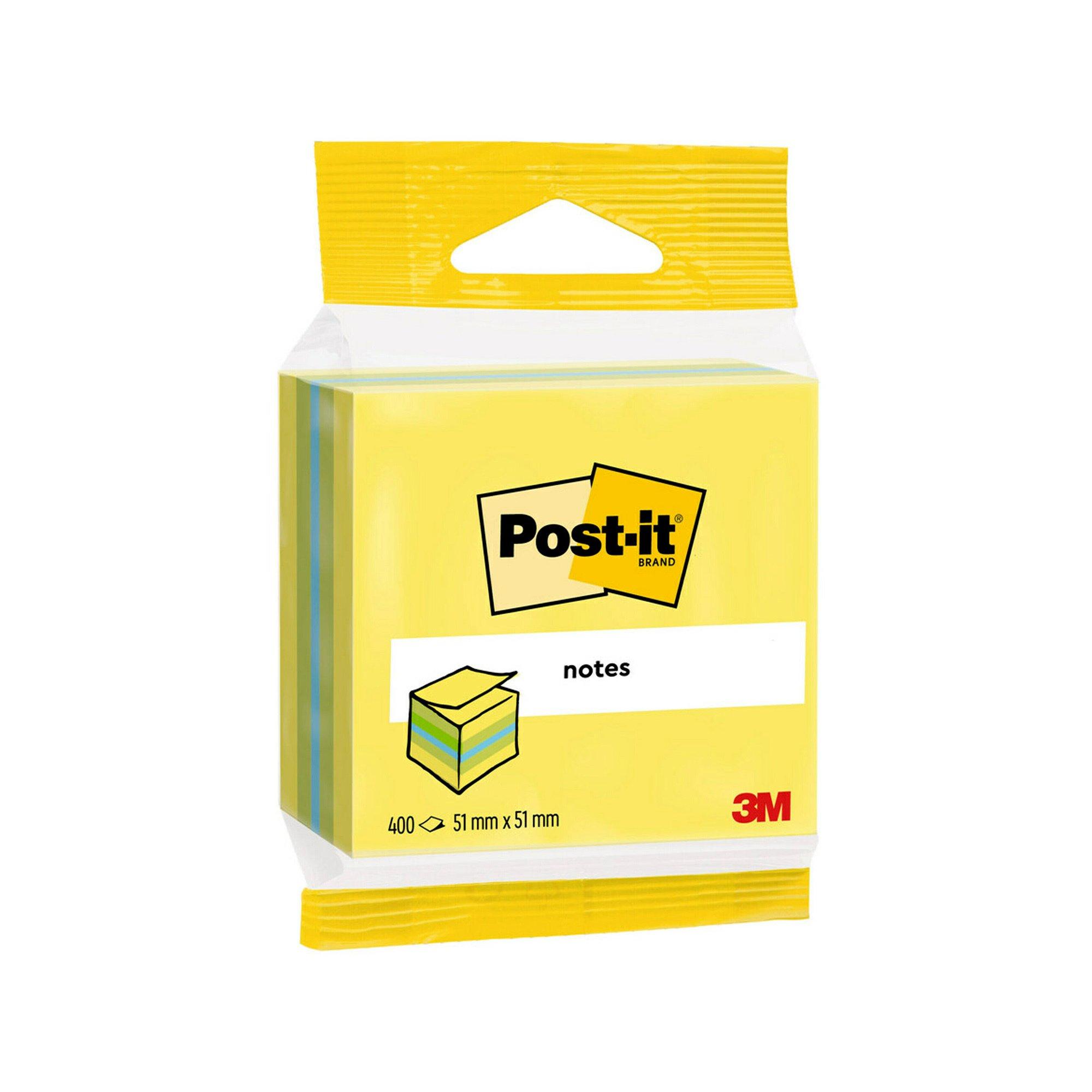 Mini cubes de Notes Post-it® disponibles dans divers coloris et parfaits à disposer sur votre bureau ou comptoir pour que vous ne soyez jamais à court de notes lorsque vous avez de bonnes idées. Leur petite taille convient parfaitement pour noter de brèves informations.