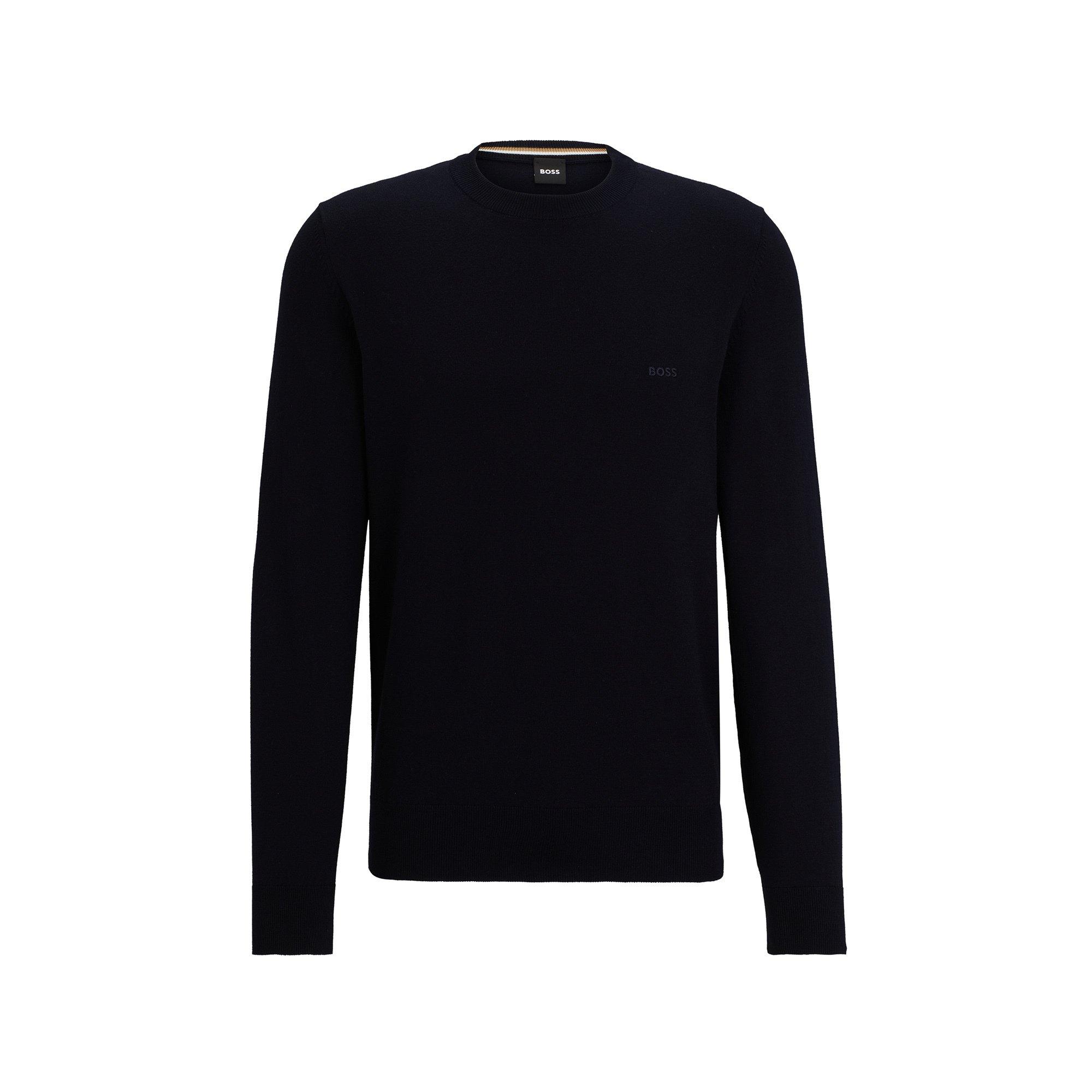 Ce pull caractéristique est confectionné en fils doux avec un col rond. Le style à coupe droite est orné d'une broderie logo. Les matières premières de ce produit proviennent de l'agriculture régénérative.