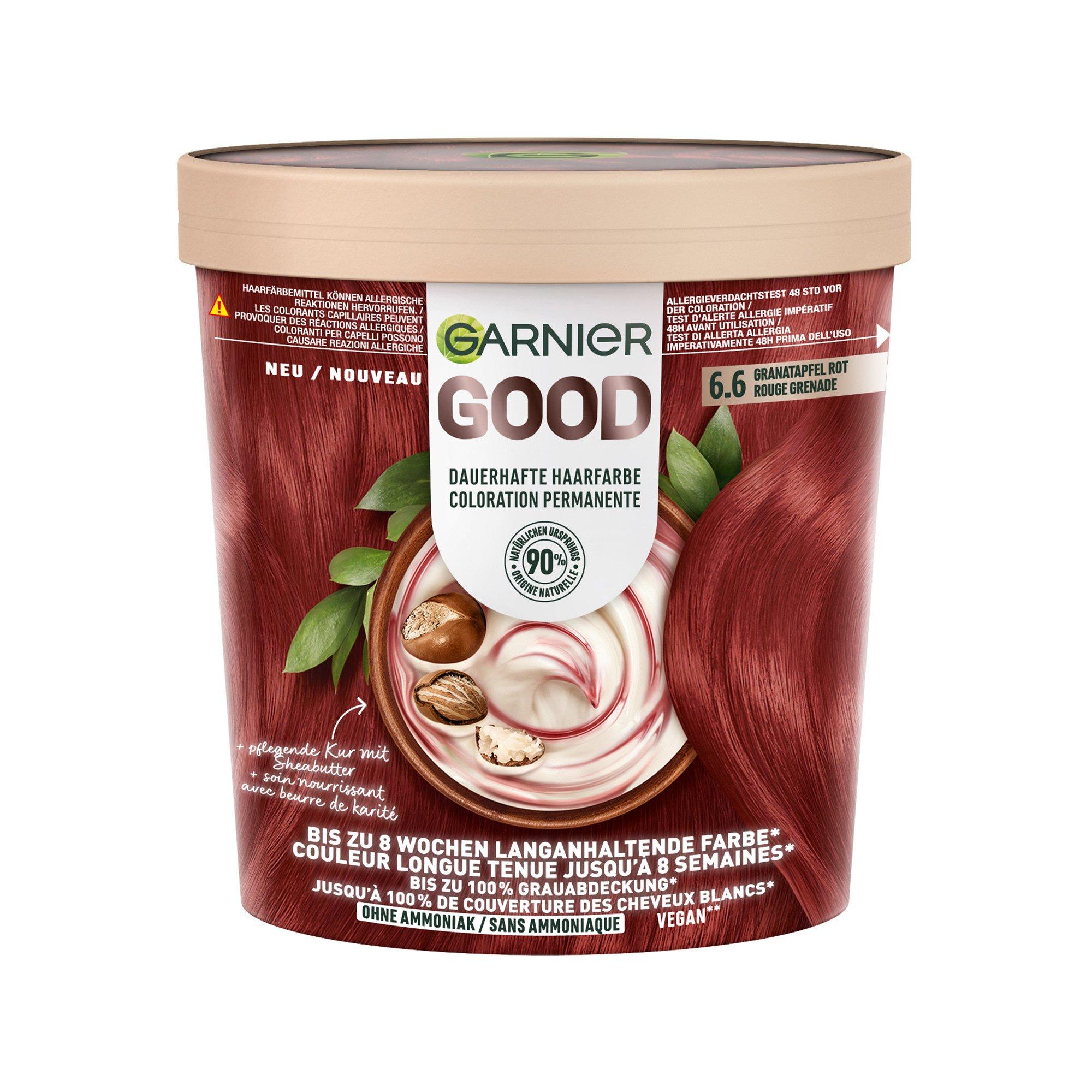 La coloration permanente de Garnier GOOD offre jusqu'à 8 semaines de couleur brillante et couvre jusqu'à 100% des cheveux gris. La coloration est extrêmement facile à appliquer avec les mains et diffuse un agréable parfum de baies de goji, d'orchidée et de bois de santal. La formule vegan composée à 90% d'ingrédients d'origine naturelle permet de créer de beaux reflets et nuances de couleur. Les pigments de couleur pénètrent en profondeur dans la fibre capillaire et assurent un résultat de coloration d'aspect naturel.