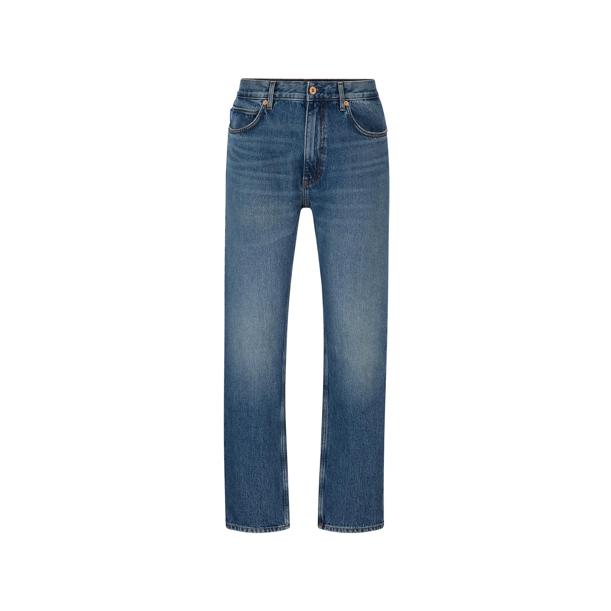 Ce jean coupe droite offre un style intemporel et confortable. Son design classique en fait un ajout polyvalent à toute garde-robe, adapté à diverses occasions.